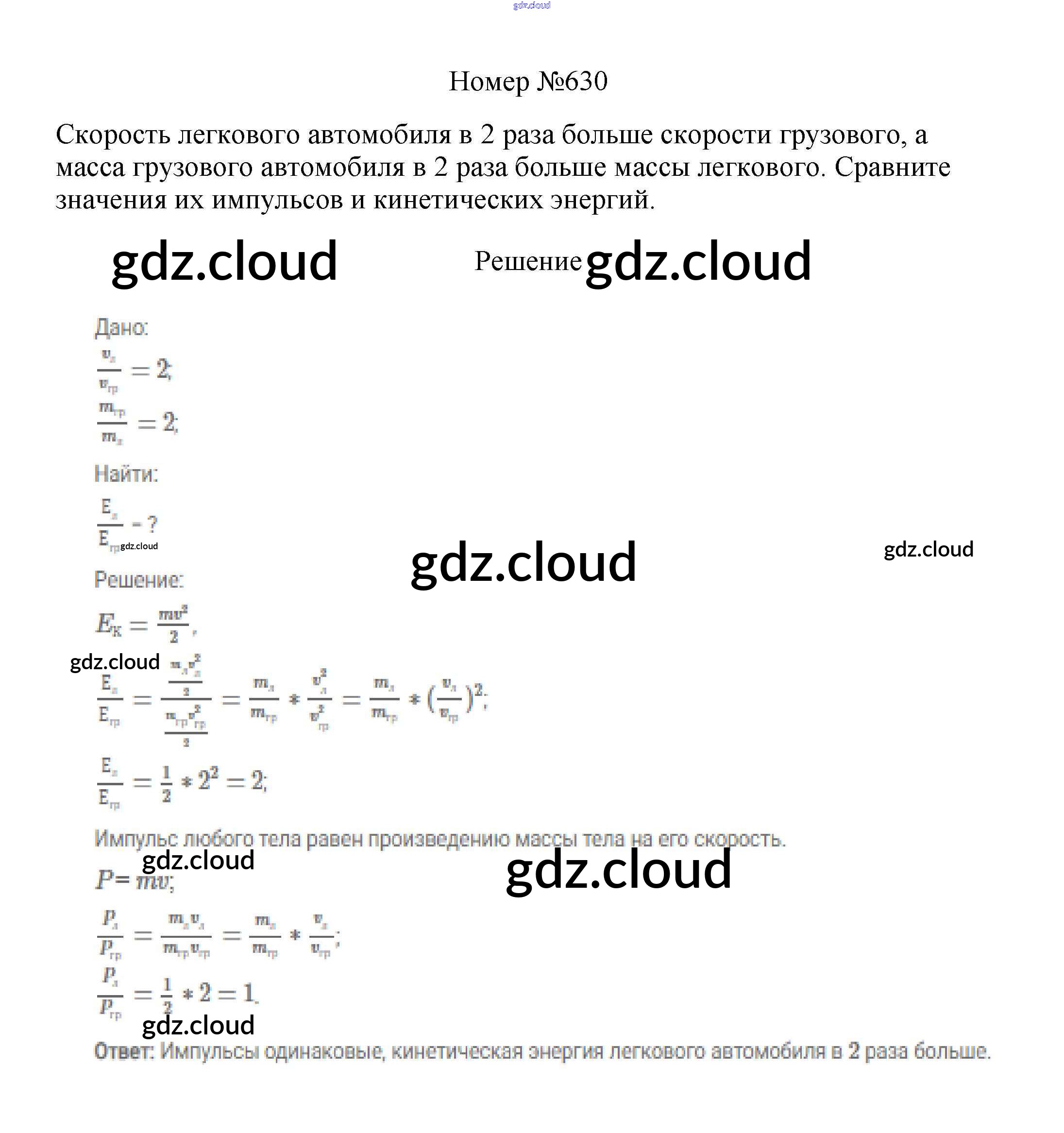 Ответ на задание 630 Сборник вопросов и задач Физика за 7, 8, 9 (седьмой, восьмой, девятый) класс Марон, Позойский Вертикаль 2013