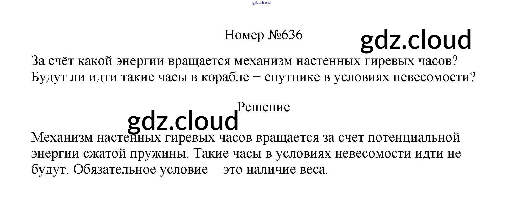 Ответ на задание 636 Сборник вопросов и задач Физика за 7, 8, 9 (седьмой, восьмой, девятый) класс Марон, Позойский Вертикаль 2013