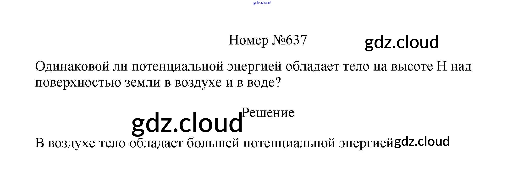 Ответ на задание 637 Сборник вопросов и задач Физика за 7, 8, 9 (седьмой, восьмой, девятый) класс Марон, Позойский Вертикаль 2013