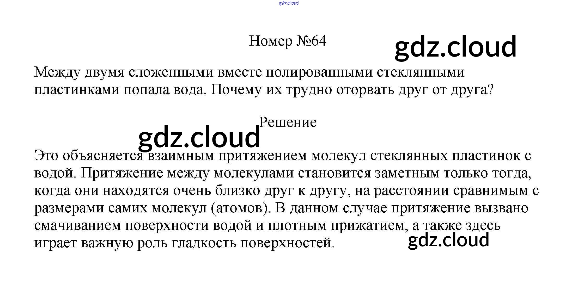 Ответ на задание 64 Сборник вопросов и задач Физика за 7, 8, 9 (седьмой, восьмой, девятый) класс Марон, Позойский Вертикаль 2013 ФГОС онлайн и без номера телефона.
