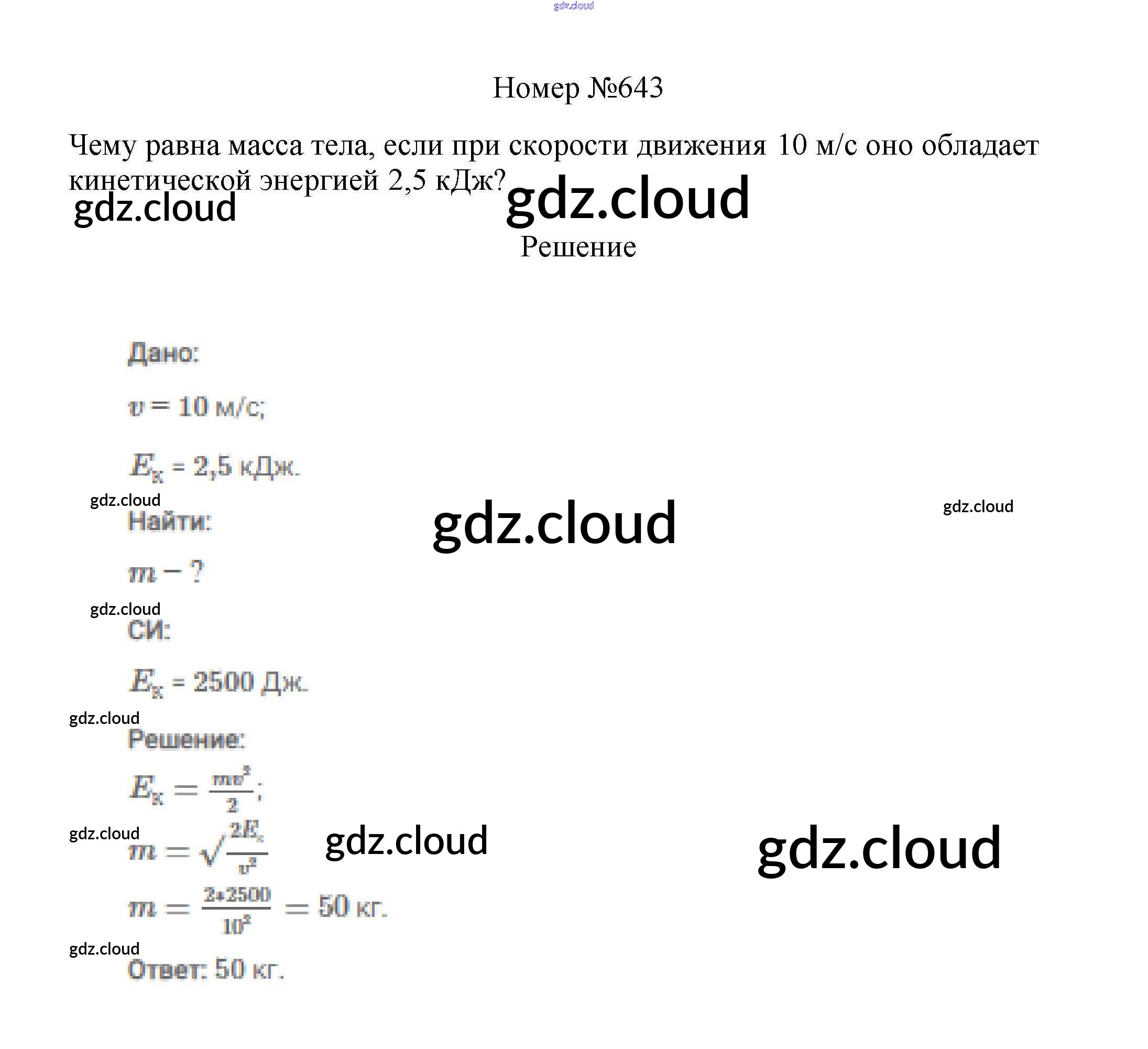 Ответ на задание 643 Сборник вопросов и задач Физика за 7, 8, 9 (седьмой, восьмой, девятый) класс Марон, Позойский Вертикаль 2013