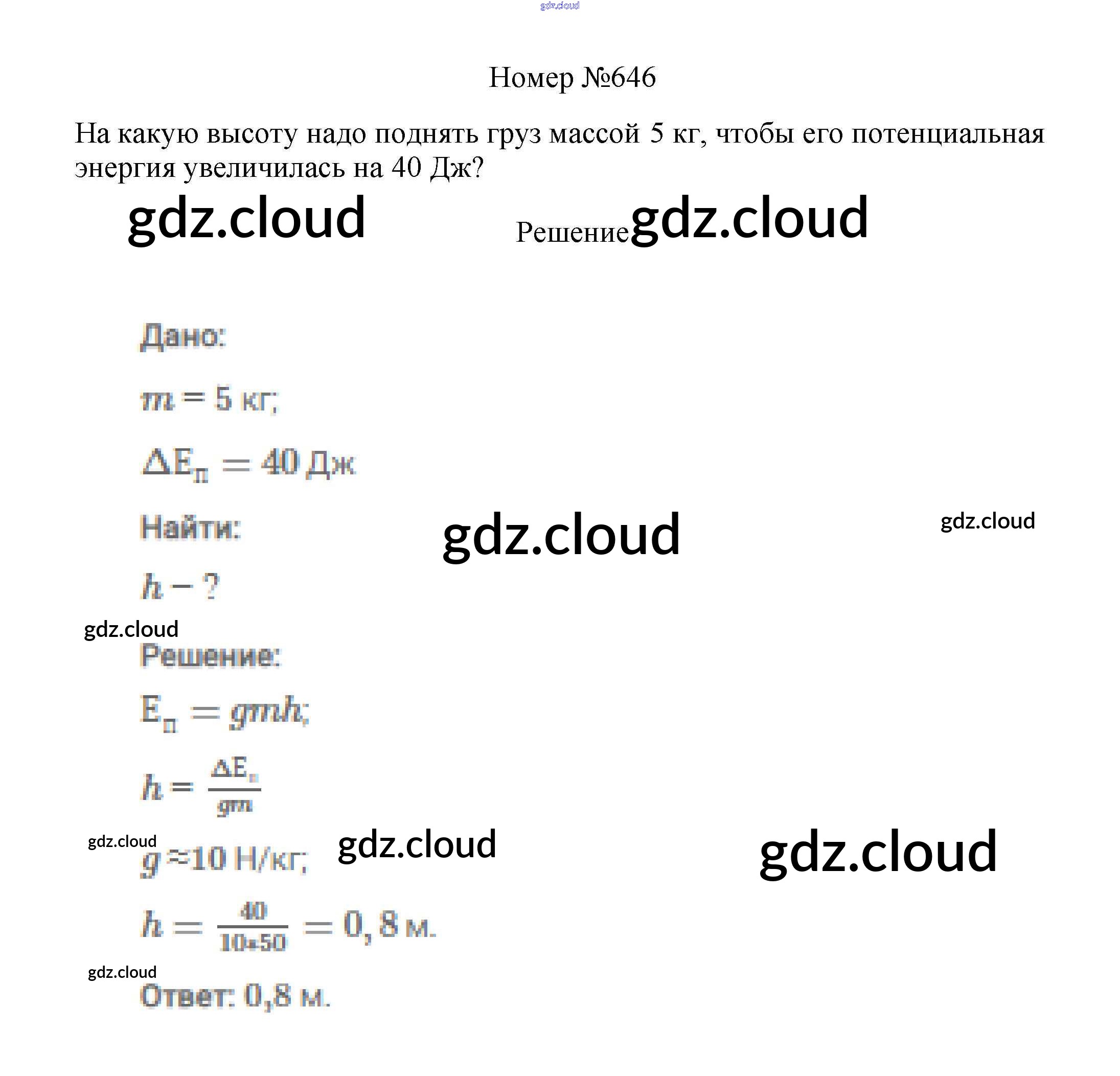 Ответ на задание 646 Сборник вопросов и задач Физика за 7, 8, 9 (седьмой, восьмой, девятый) класс Марон, Позойский Вертикаль 2013