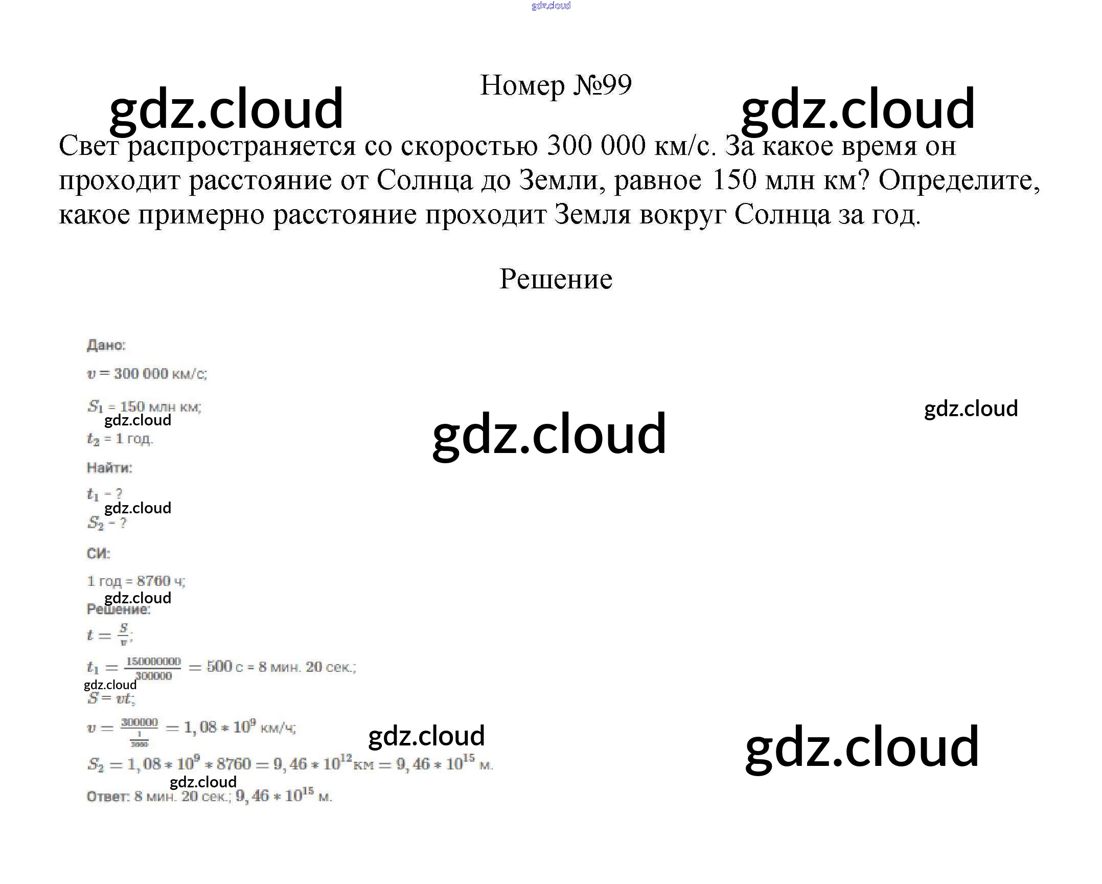 Ответ на задание 99 Сборник вопросов и задач Физика за 7, 8, 9 (седьмой, восьмой, девятый) класс Марон, Позойский Вертикаль 2013 ФГОС онлайн и без номера телефона.