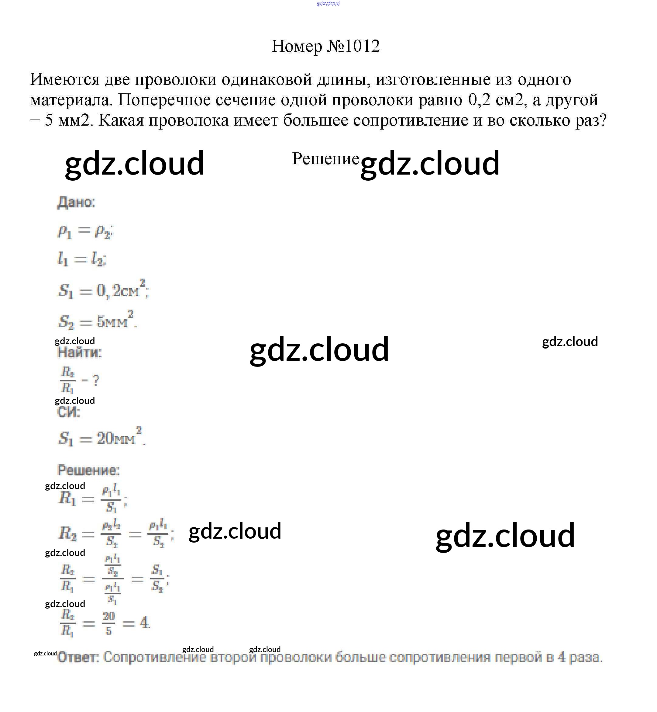 Ответ на задание 1012 Сборник вопросов и задач Физика за 7, 8, 9 (седьмой, восьмой, девятый) класс Марон, Позойский Вертикаль 2013