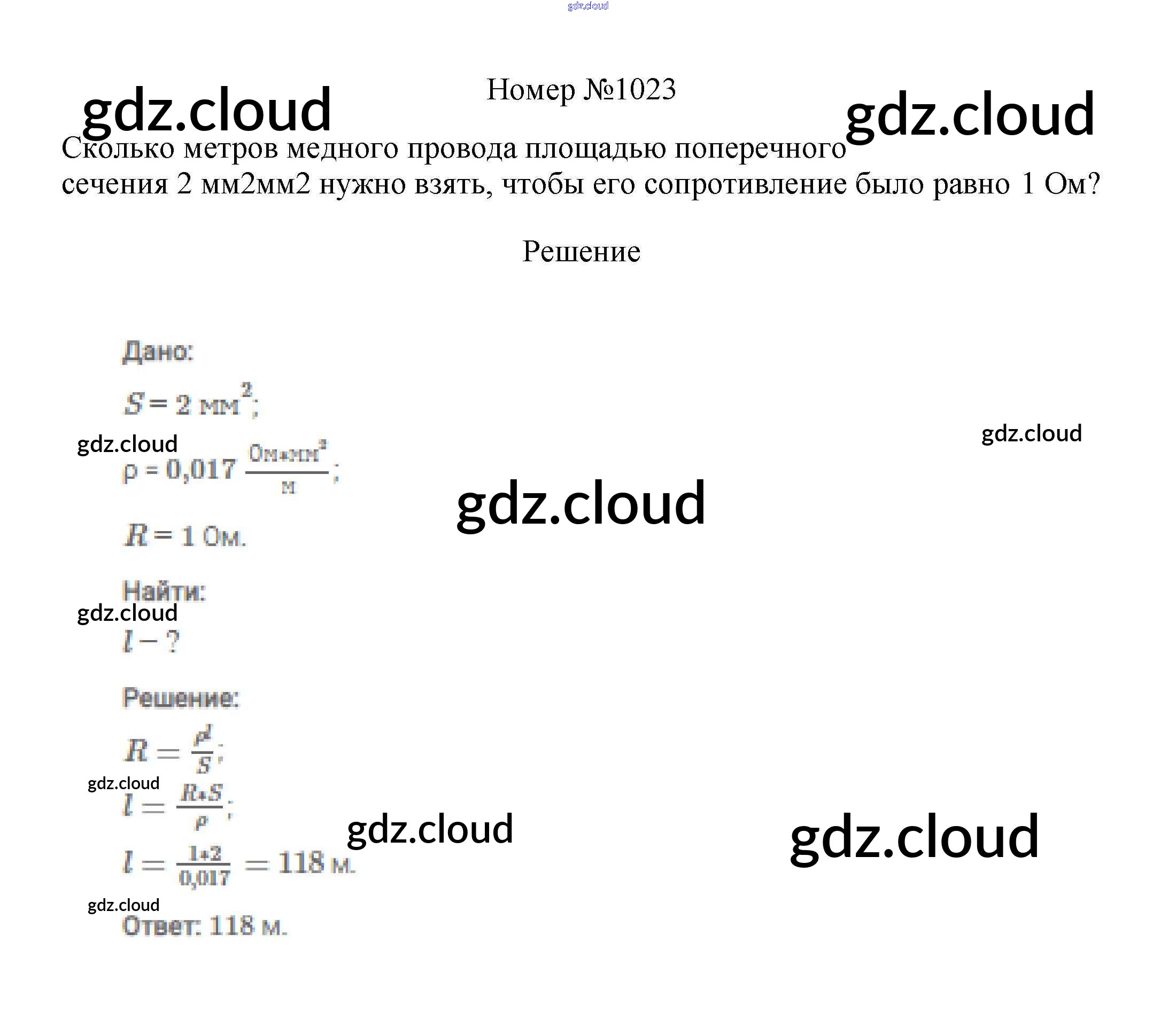 Ответ на задание 1023 Сборник вопросов и задач Физика за 7, 8, 9 (седьмой, восьмой, девятый) класс Марон, Позойский Вертикаль 2013
