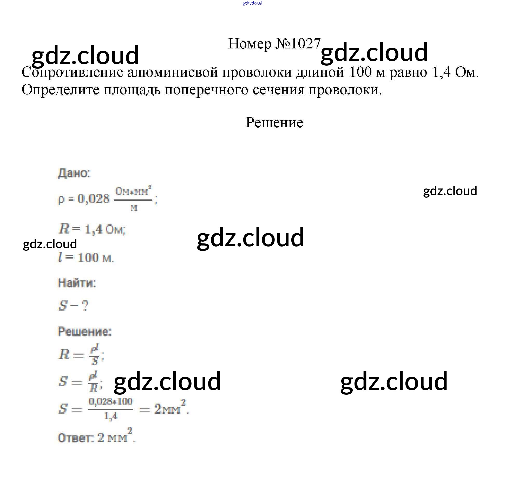 Ответ на задание 1027 Сборник вопросов и задач Физика за 7, 8, 9 (седьмой, восьмой, девятый) класс Марон, Позойский Вертикаль 2013