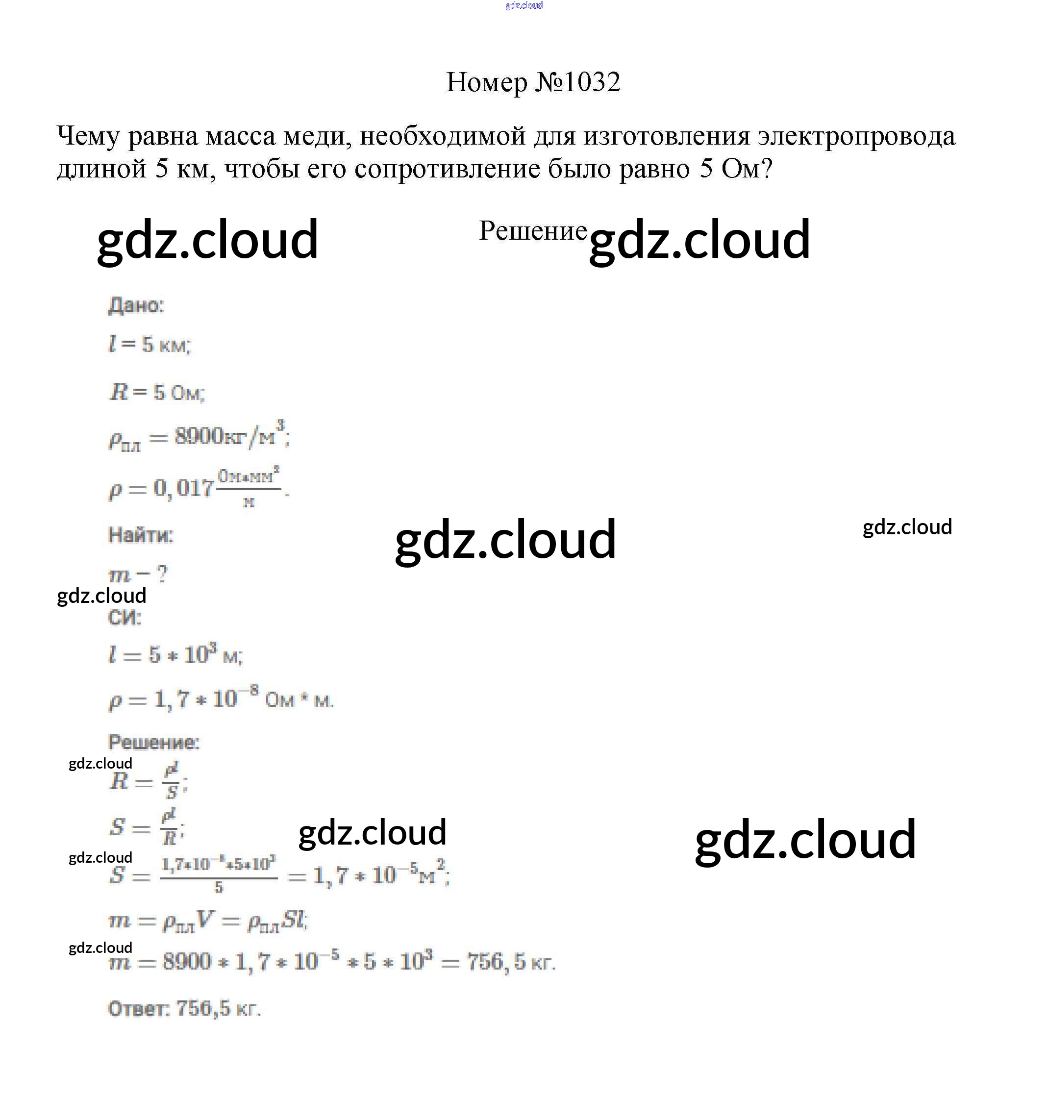 Ответ на задание 1032 Сборник вопросов и задач Физика за 7, 8, 9 (седьмой, восьмой, девятый) класс Марон, Позойский Вертикаль 2013