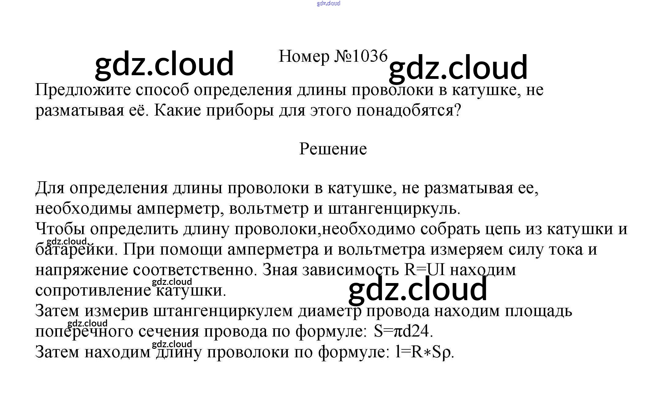 Ответ на задание 1036 Сборник вопросов и задач Физика за 7, 8, 9 (седьмой, восьмой, девятый) класс Марон, Позойский Вертикаль 2013