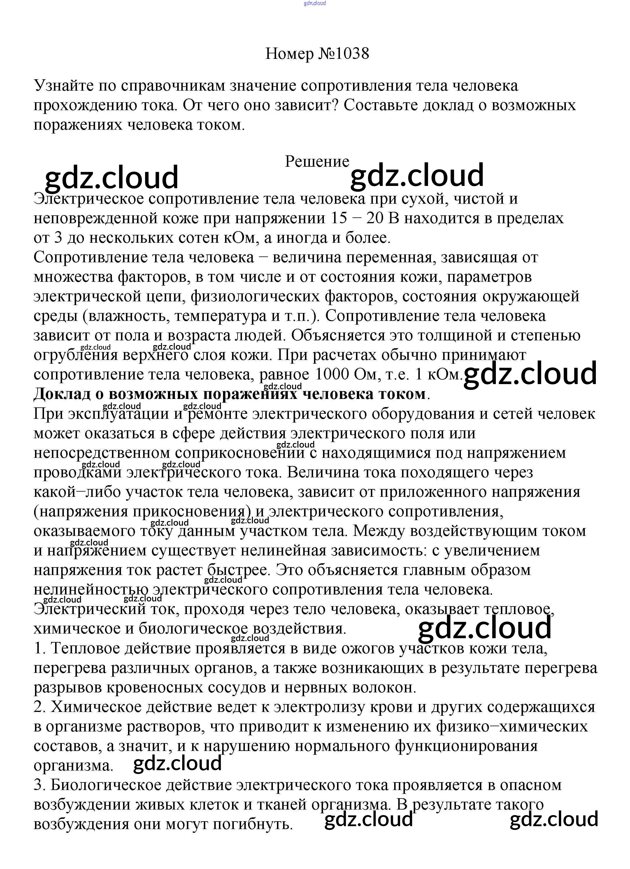 Ответ на задание 1038 Сборник вопросов и задач Физика за 7, 8, 9 (седьмой, восьмой, девятый) класс Марон, Позойский Вертикаль 2013