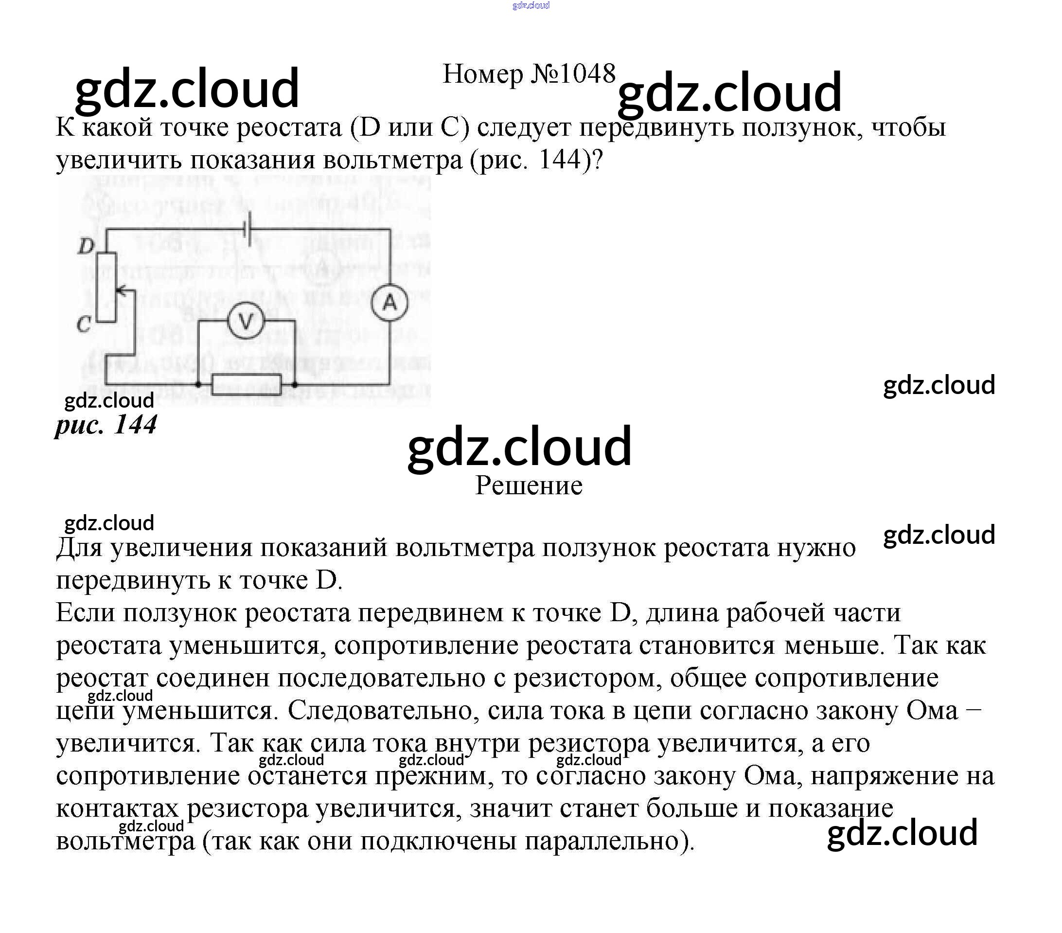 Ответ на задание 1048 Сборник вопросов и задач Физика за 7, 8, 9 (седьмой, восьмой, девятый) класс Марон, Позойский Вертикаль 2013