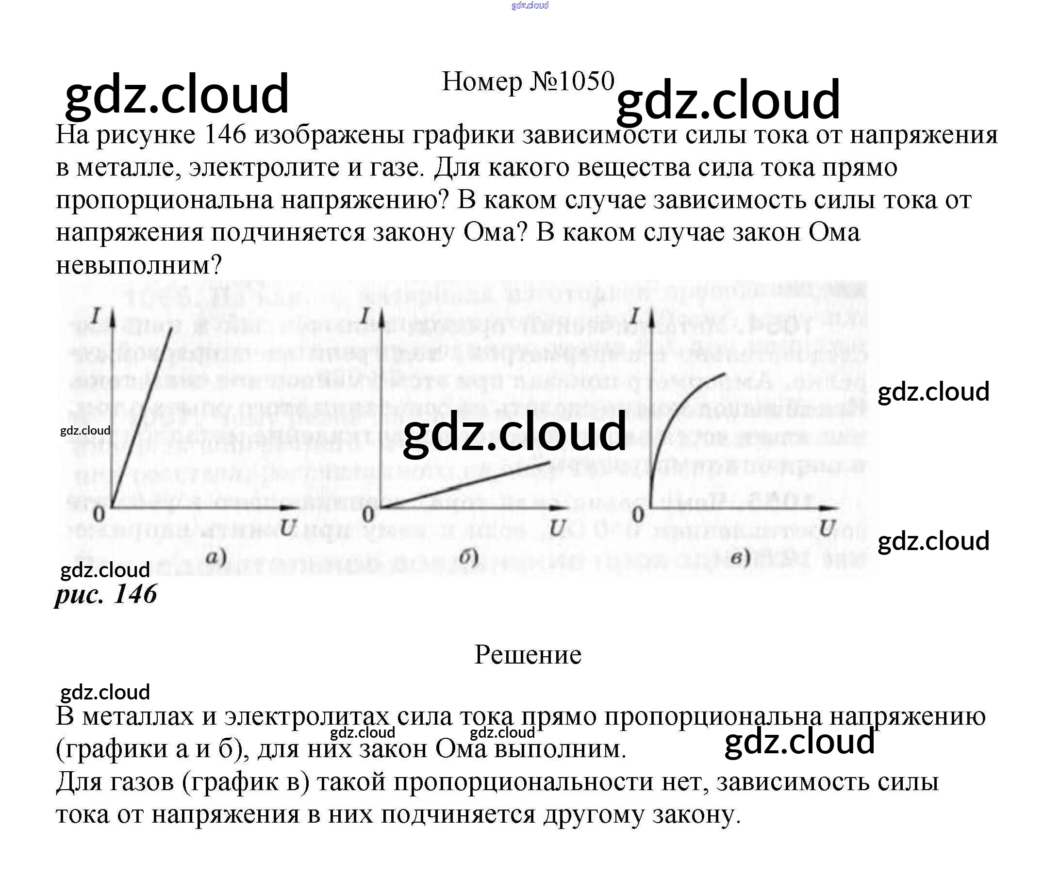 Ответ на задание 1050 Сборник вопросов и задач Физика за 7, 8, 9 (седьмой, восьмой, девятый) класс Марон, Позойский Вертикаль 2013