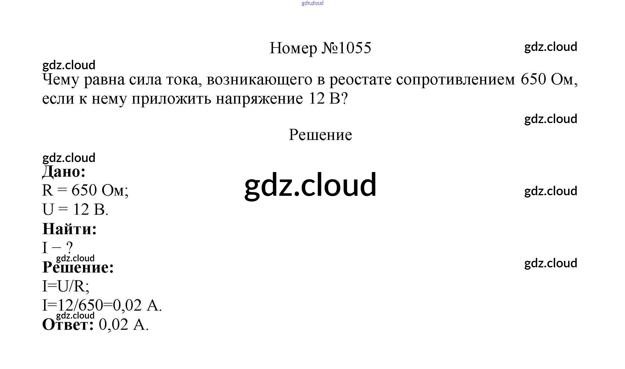 Ответ на задание 1055 Сборник вопросов и задач Физика за 7, 8, 9 (седьмой, восьмой, девятый) класс Марон, Позойский Вертикаль 2013