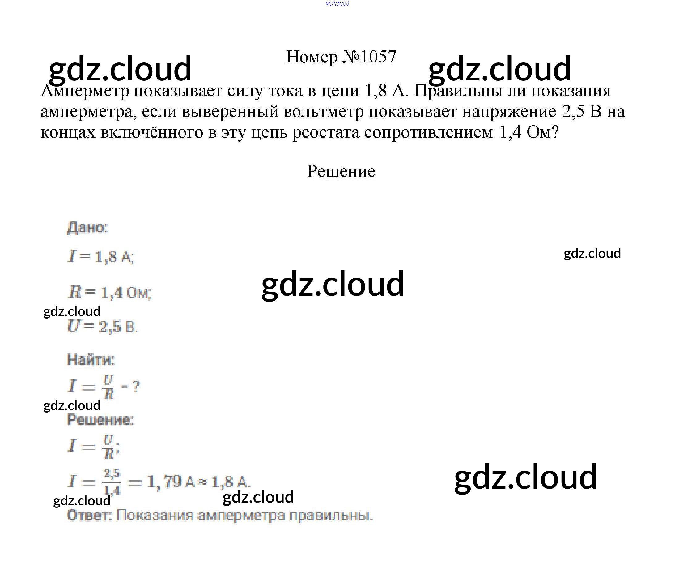 Ответ на задание 1057 Сборник вопросов и задач Физика за 7, 8, 9 (седьмой, восьмой, девятый) класс Марон, Позойский Вертикаль 2013