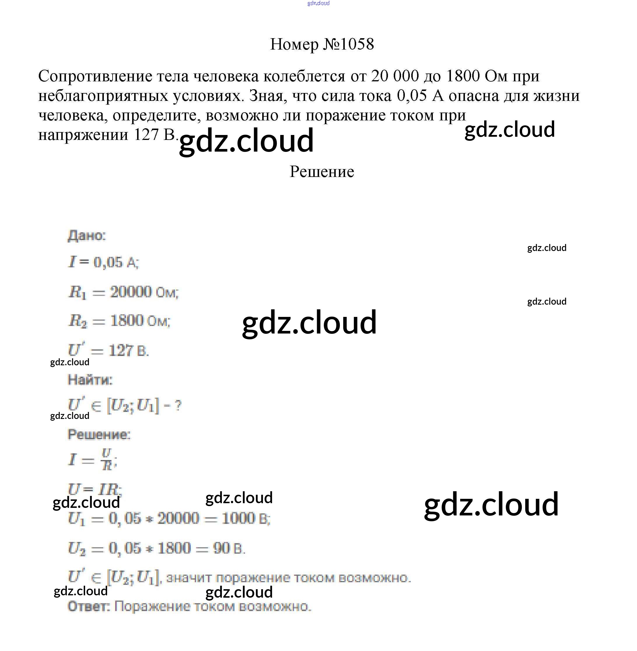 Ответ на задание 1058 Сборник вопросов и задач Физика за 7, 8, 9 (седьмой, восьмой, девятый) класс Марон, Позойский Вертикаль 2013