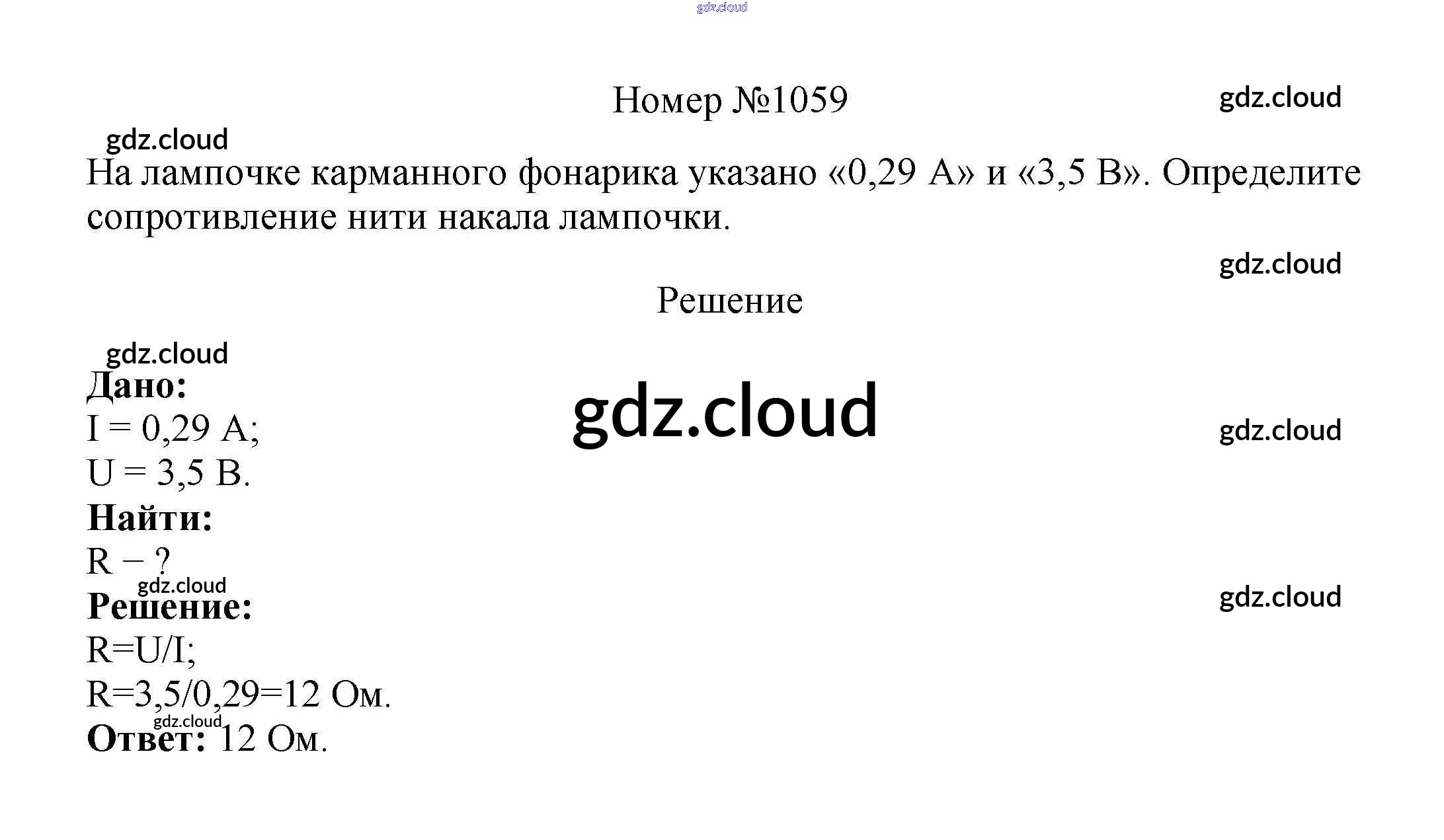 Ответ на задание 1059 Сборник вопросов и задач Физика за 7, 8, 9 (седьмой, восьмой, девятый) класс Марон, Позойский Вертикаль 2013