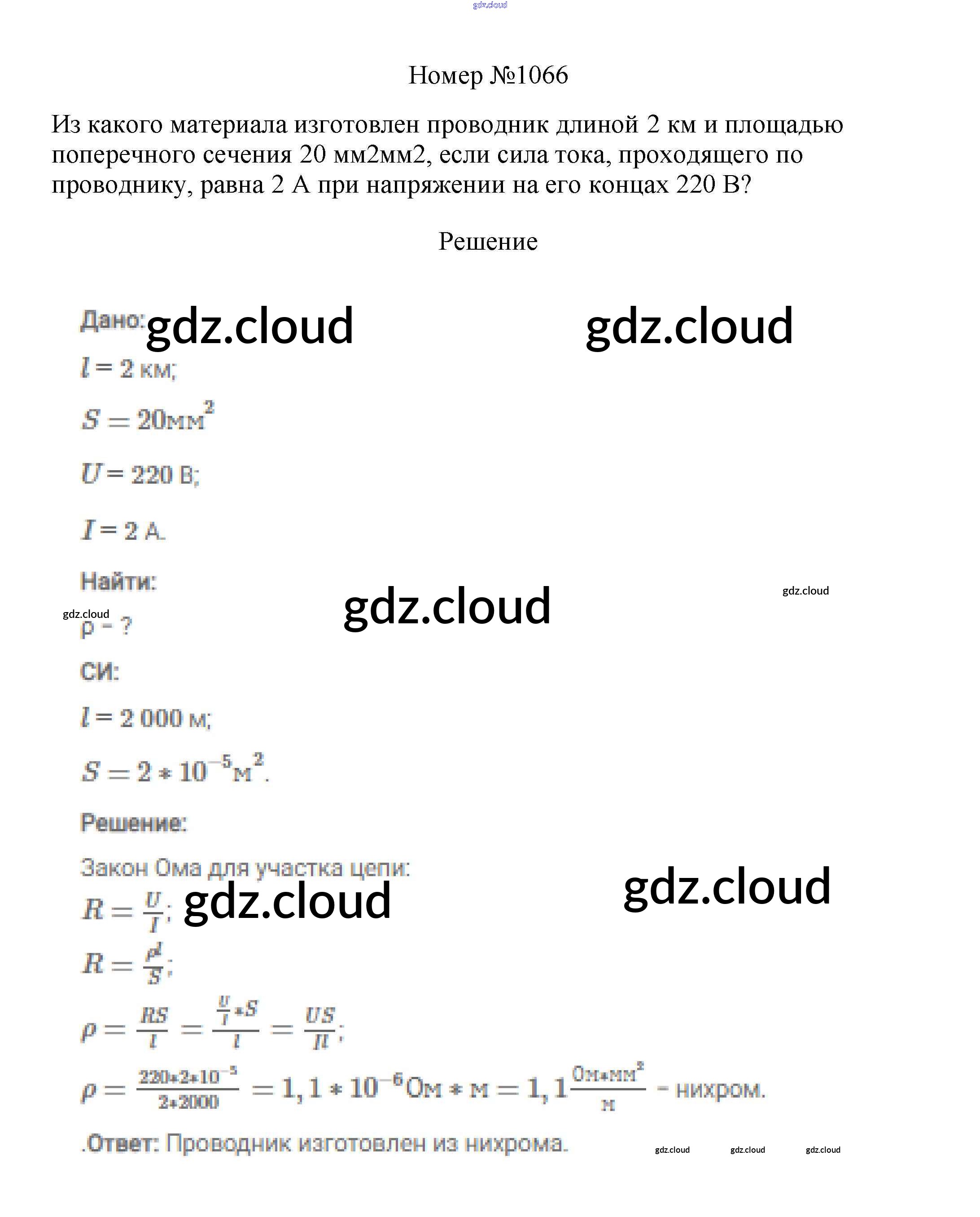 Ответ на задание 1066 Сборник вопросов и задач Физика за 7, 8, 9 (седьмой, восьмой, девятый) класс Марон, Позойский Вертикаль 2013