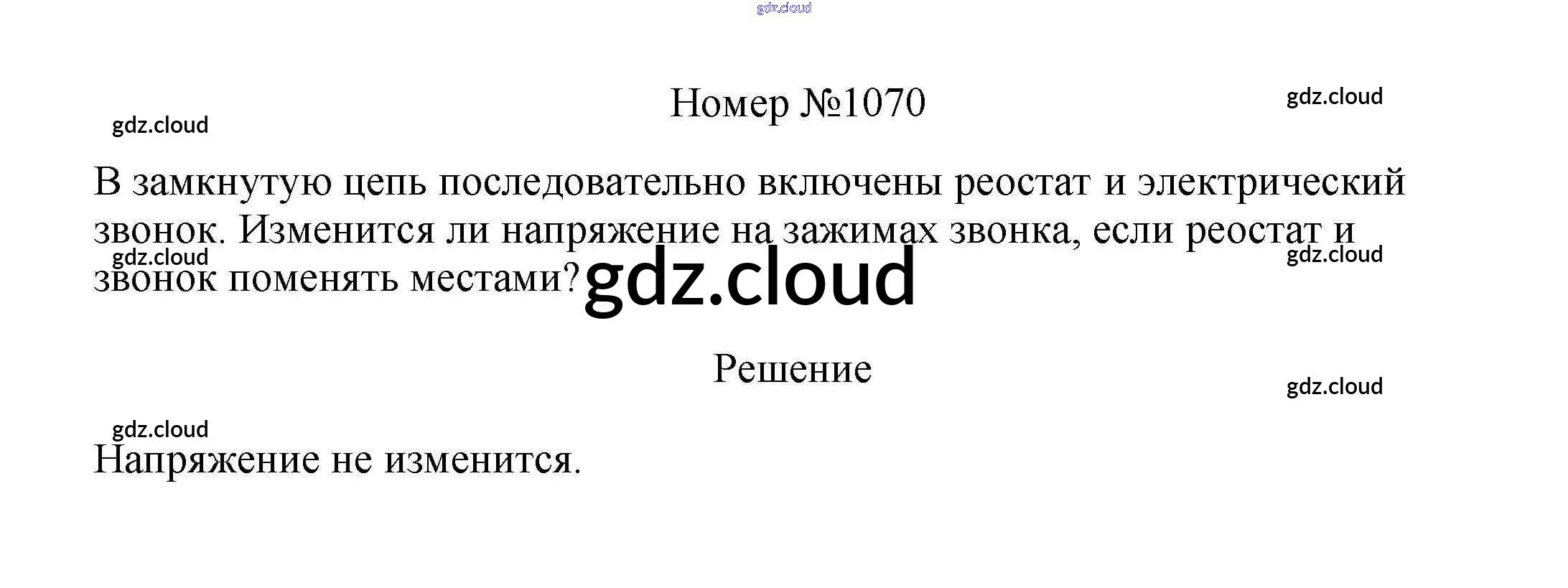 Ответ на задание 1070 Сборник вопросов и задач Физика за 7, 8, 9 (седьмой, восьмой, девятый) класс Марон, Позойский Вертикаль 2013