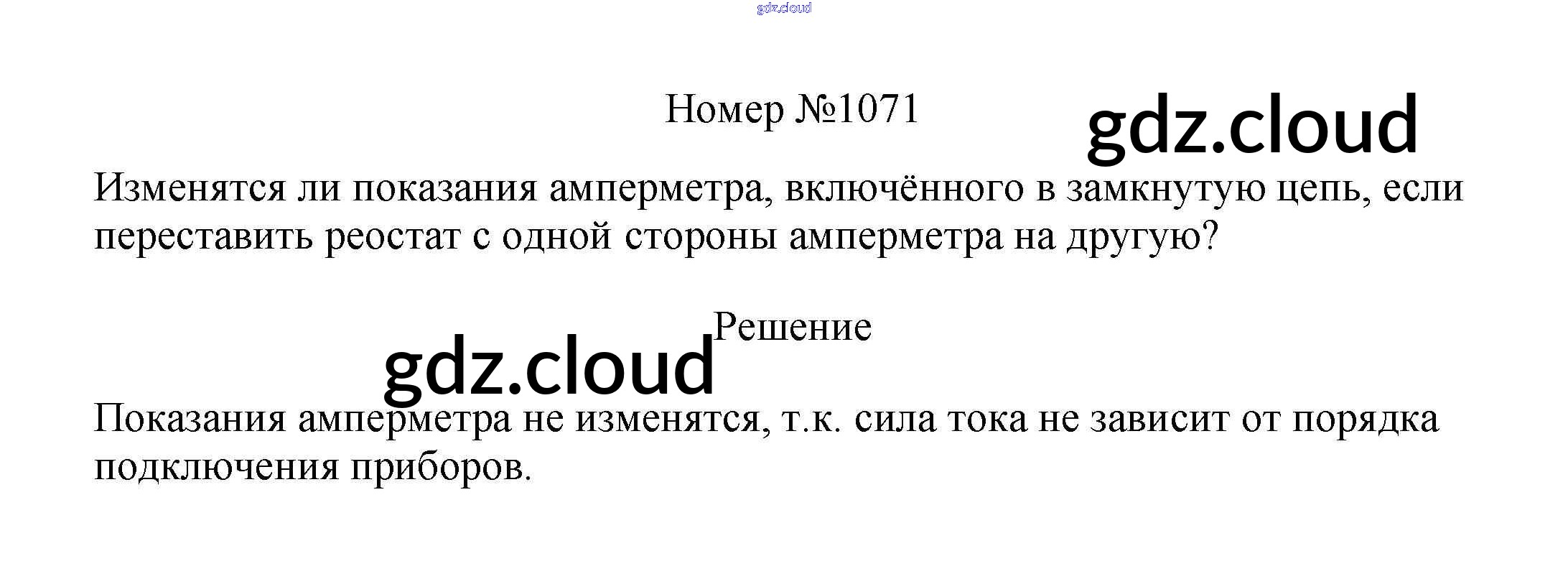Ответ на задание 1071 Сборник вопросов и задач Физика за 7, 8, 9 (седьмой, восьмой, девятый) класс Марон, Позойский Вертикаль 2013
