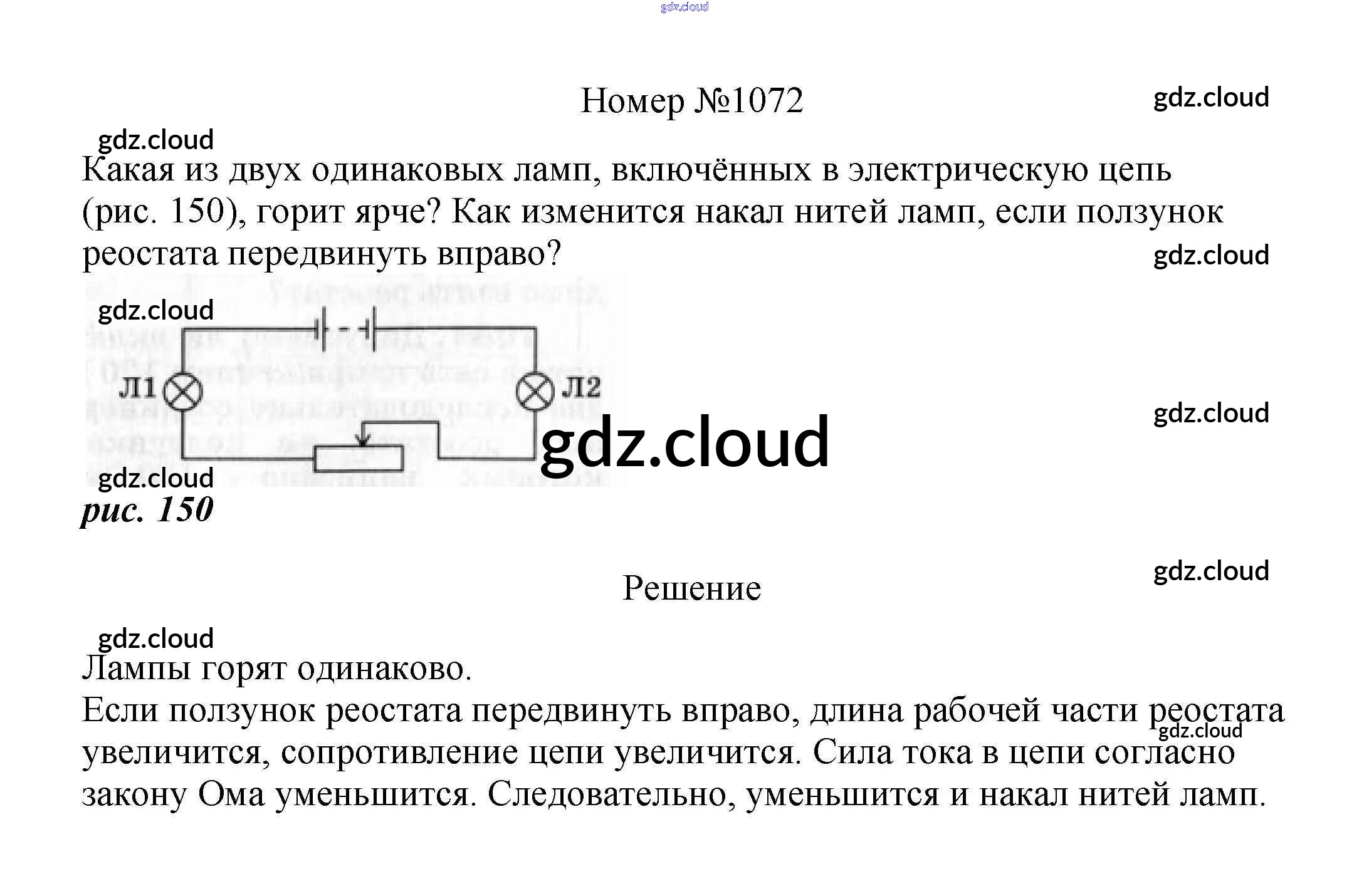 Ответ на задание 1072 Сборник вопросов и задач Физика за 7, 8, 9 (седьмой, восьмой, девятый) класс Марон, Позойский Вертикаль 2013