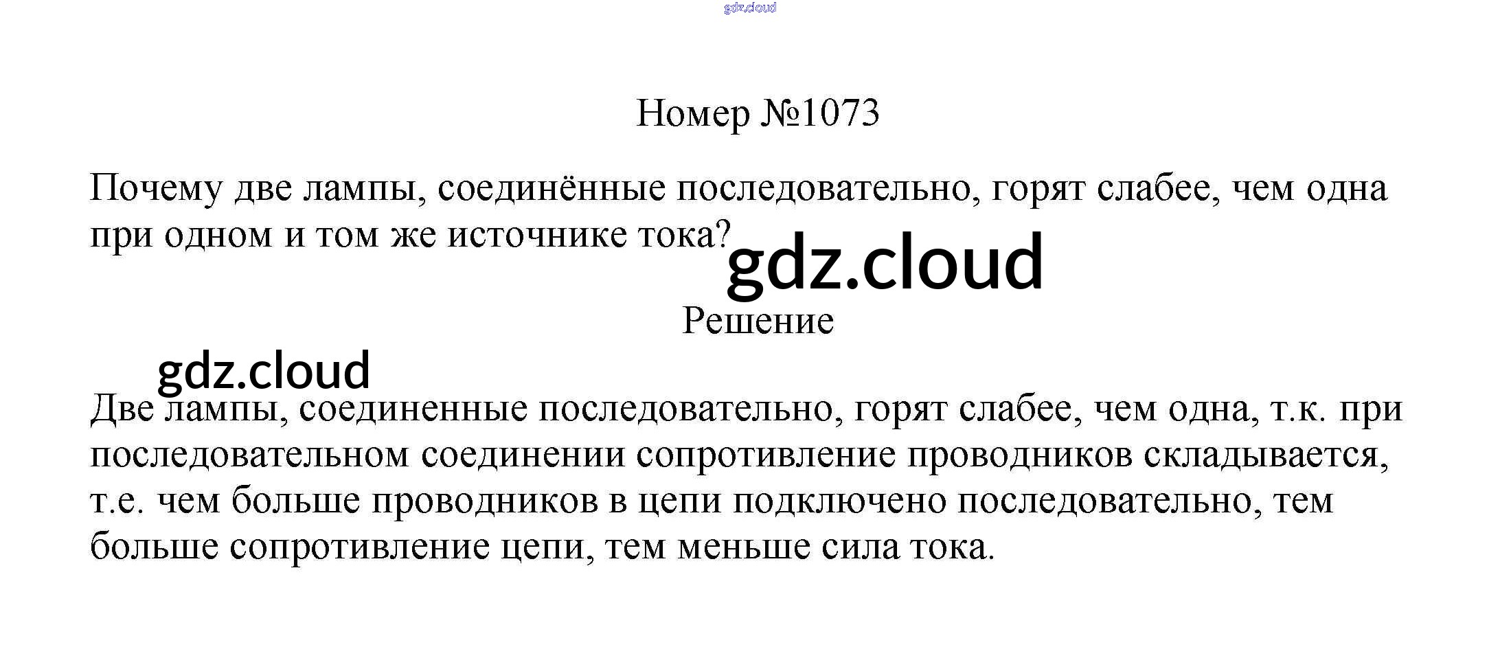 Ответ на задание 1073 Сборник вопросов и задач Физика за 7, 8, 9 (седьмой, восьмой, девятый) класс Марон, Позойский Вертикаль 2013