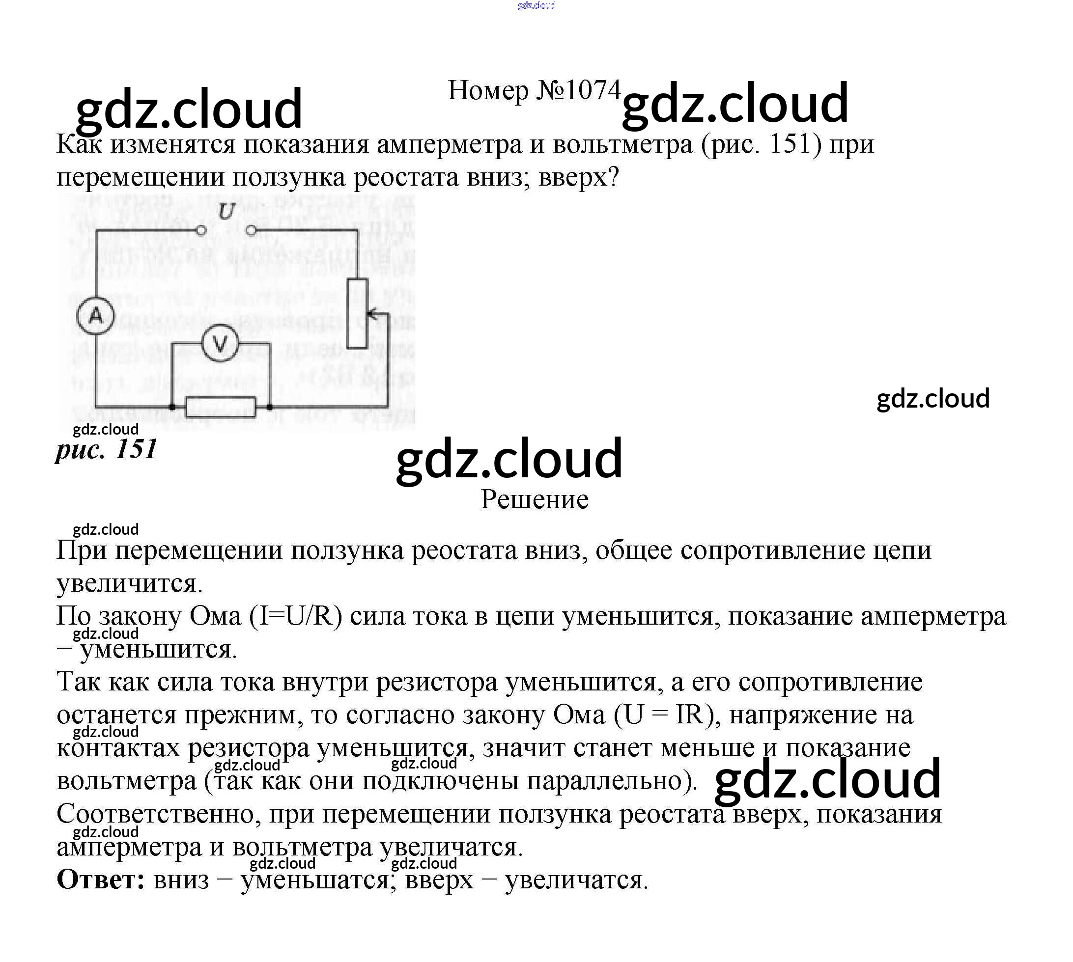 Ответ на задание 1074 Сборник вопросов и задач Физика за 7, 8, 9 (седьмой, восьмой, девятый) класс Марон, Позойский Вертикаль 2013