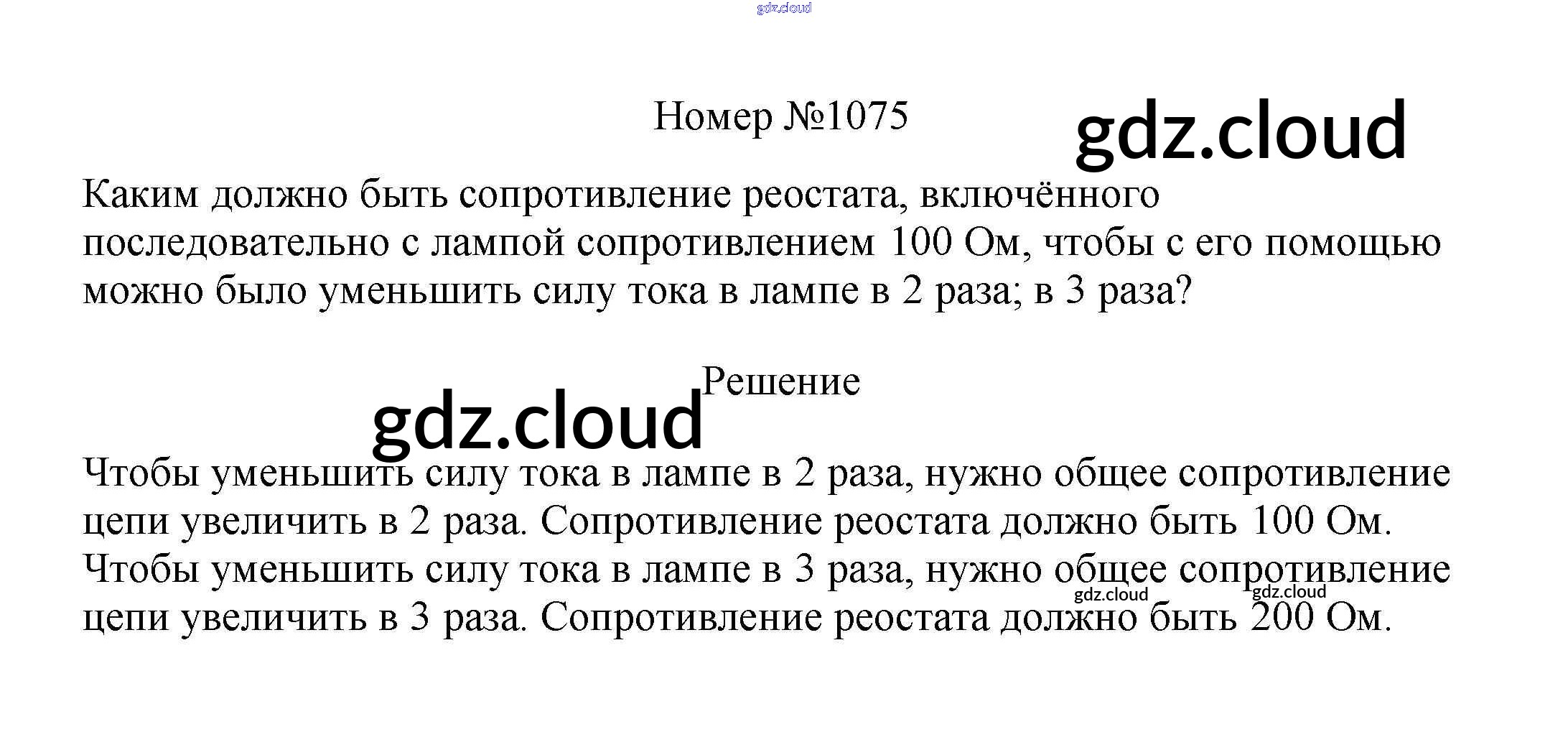 Ответ на задание 1075 Сборник вопросов и задач Физика за 7, 8, 9 (седьмой, восьмой, девятый) класс Марон, Позойский Вертикаль 2013