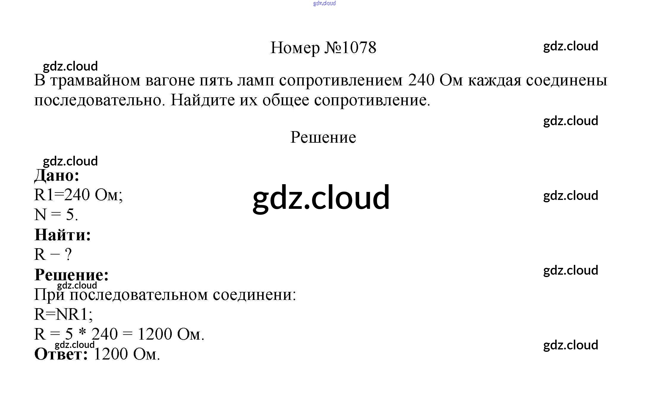 Ответ на задание 1078 Сборник вопросов и задач Физика за 7, 8, 9 (седьмой, восьмой, девятый) класс Марон, Позойский Вертикаль 2013