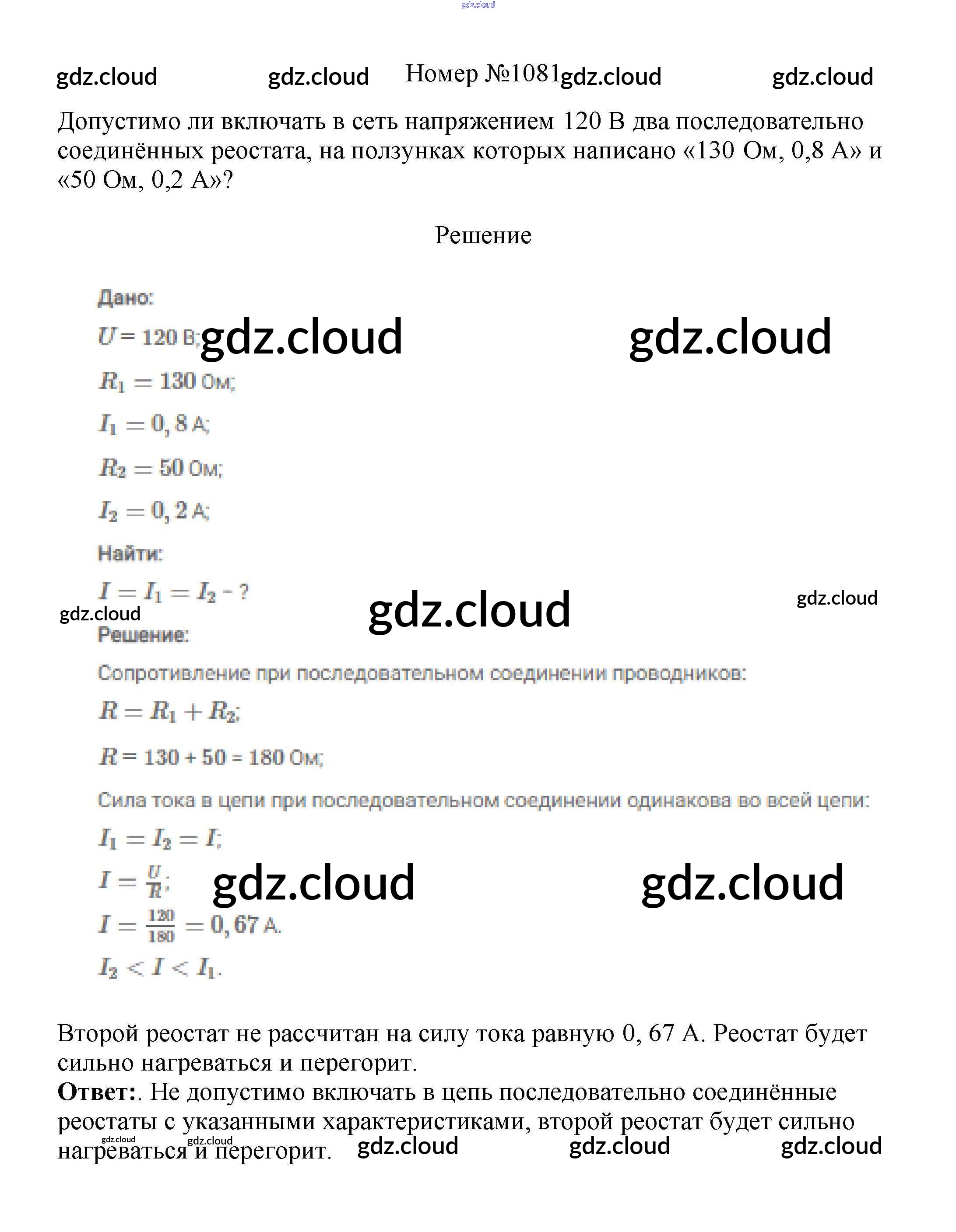Ответ на задание 1081 Сборник вопросов и задач Физика за 7, 8, 9 (седьмой, восьмой, девятый) класс Марон, Позойский Вертикаль 2013