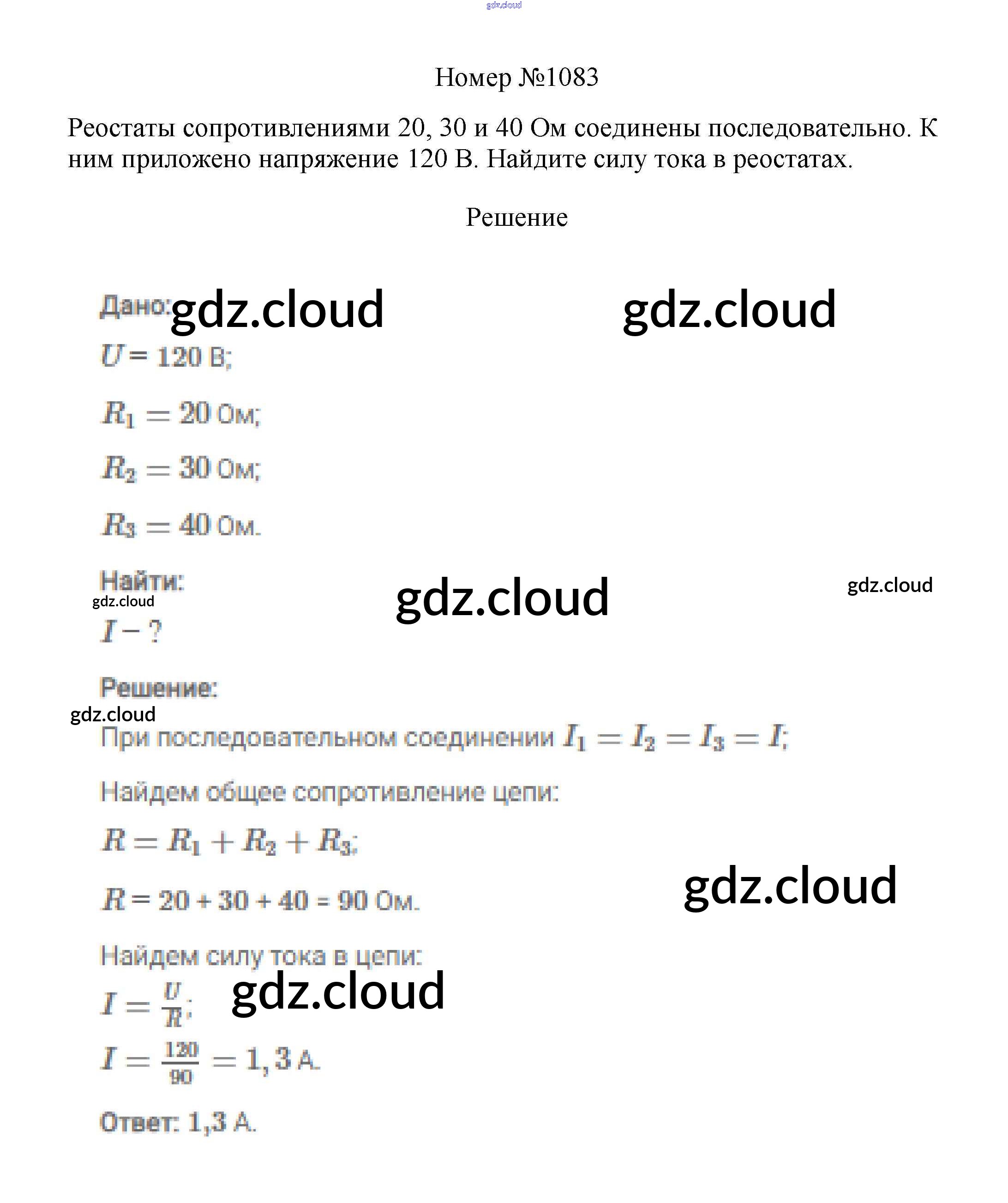 Ответ на задание 1083 Сборник вопросов и задач Физика за 7, 8, 9 (седьмой, восьмой, девятый) класс Марон, Позойский Вертикаль 2013