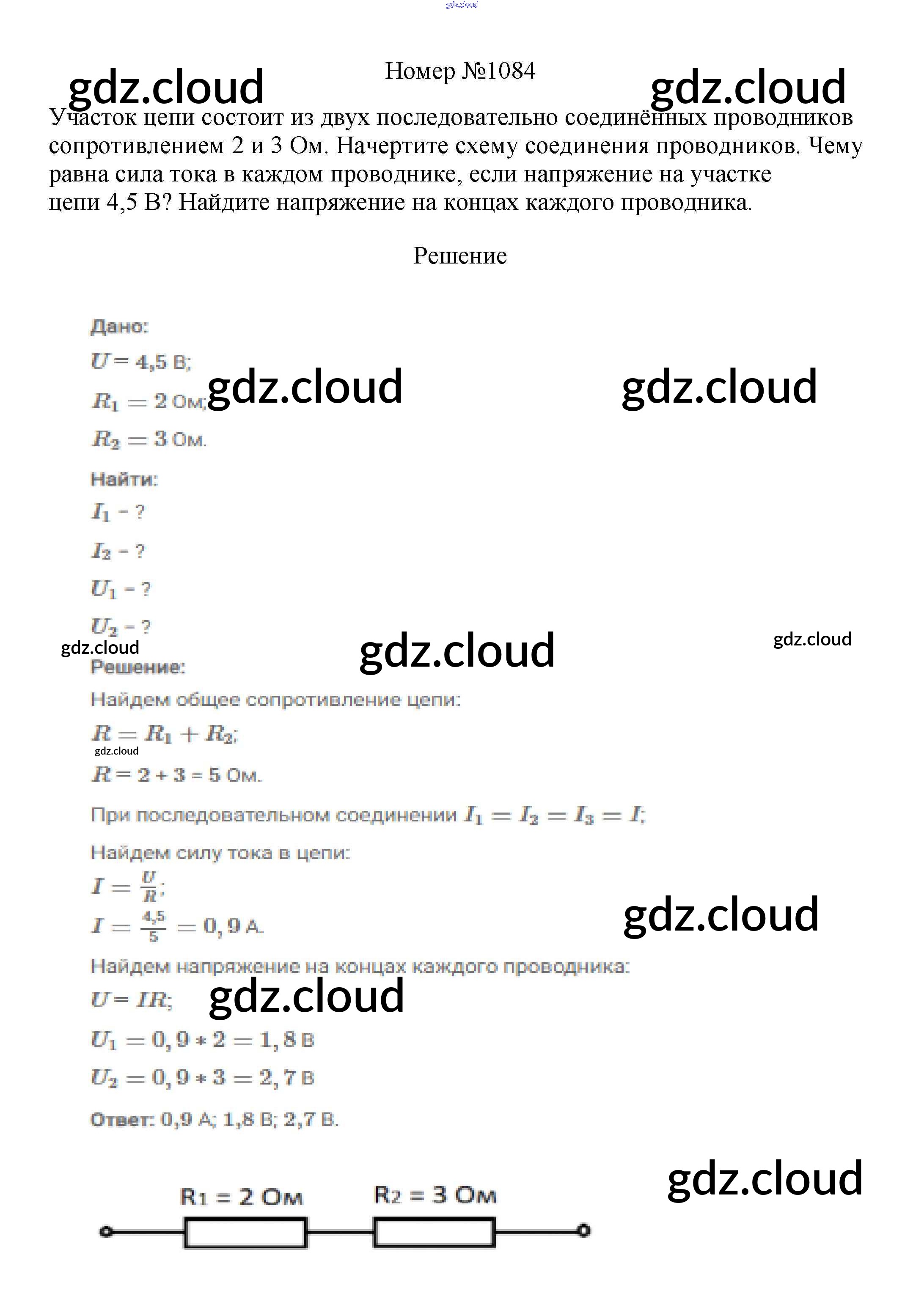 Ответ на задание 1084 Сборник вопросов и задач Физика за 7, 8, 9 (седьмой, восьмой, девятый) класс Марон, Позойский Вертикаль 2013