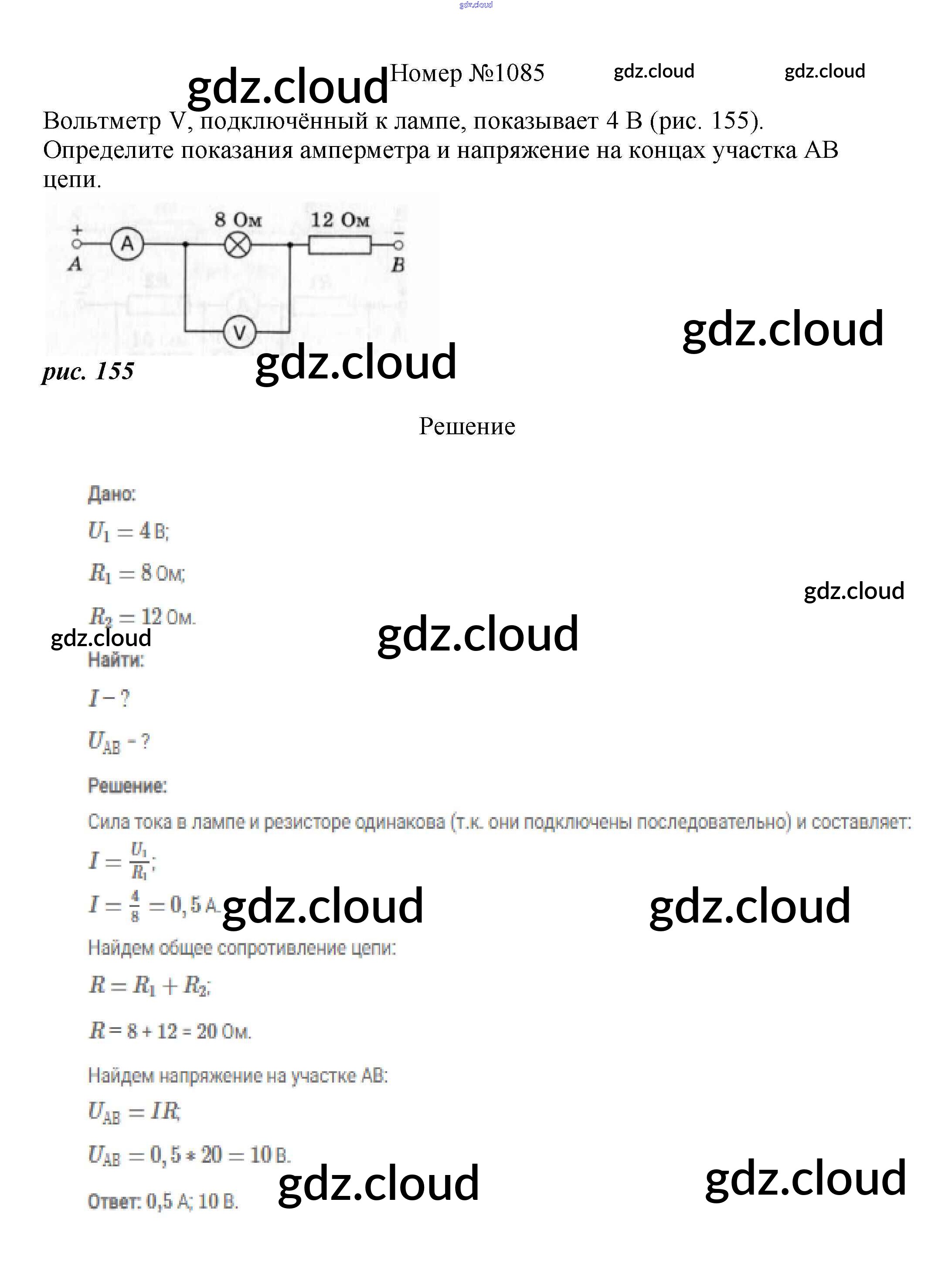 Ответ на задание 1085 Сборник вопросов и задач Физика за 7, 8, 9 (седьмой, восьмой, девятый) класс Марон, Позойский Вертикаль 2013