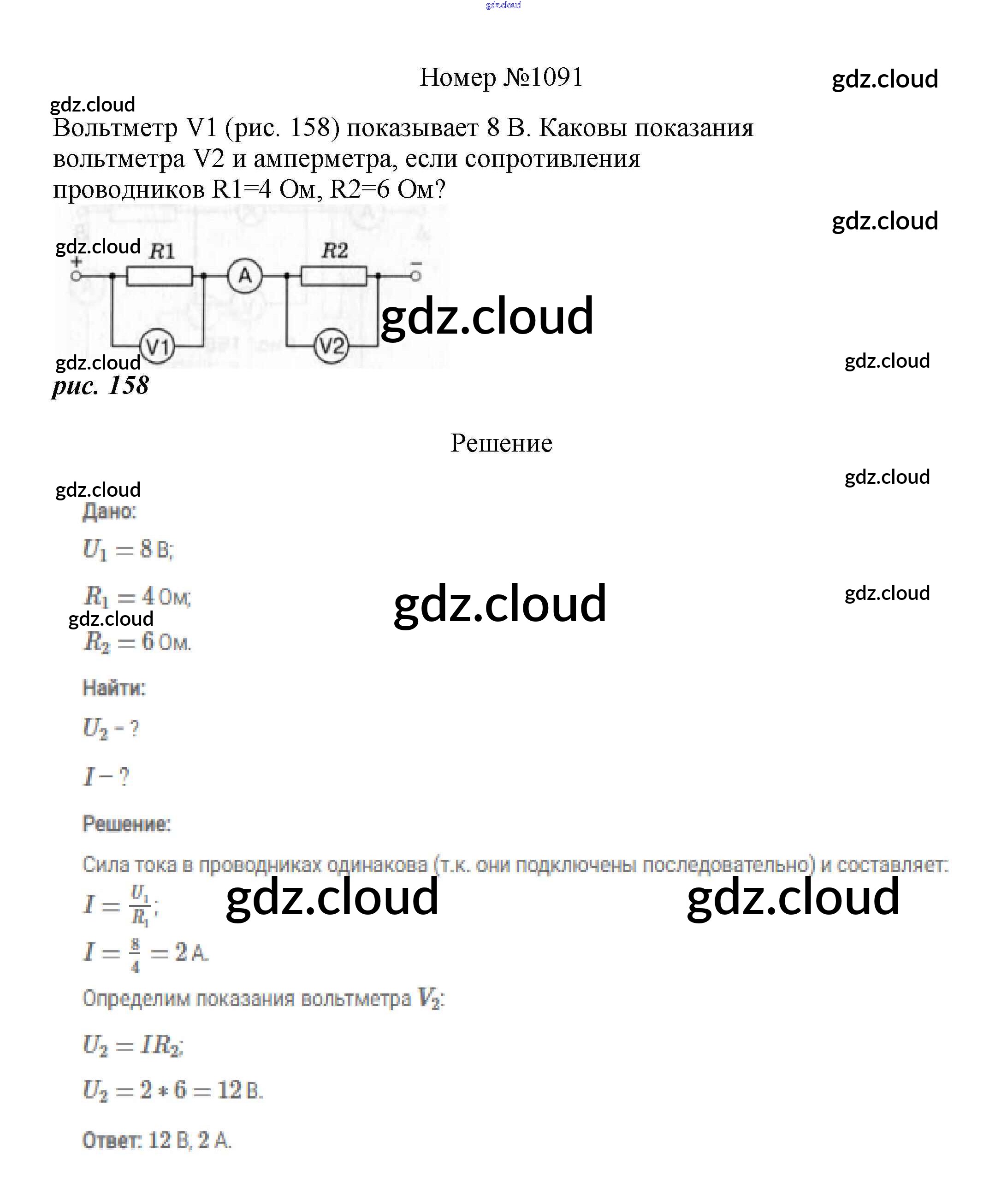 Ответ на задание 1091 Сборник вопросов и задач Физика за 7, 8, 9 (седьмой, восьмой, девятый) класс Марон, Позойский Вертикаль 2013