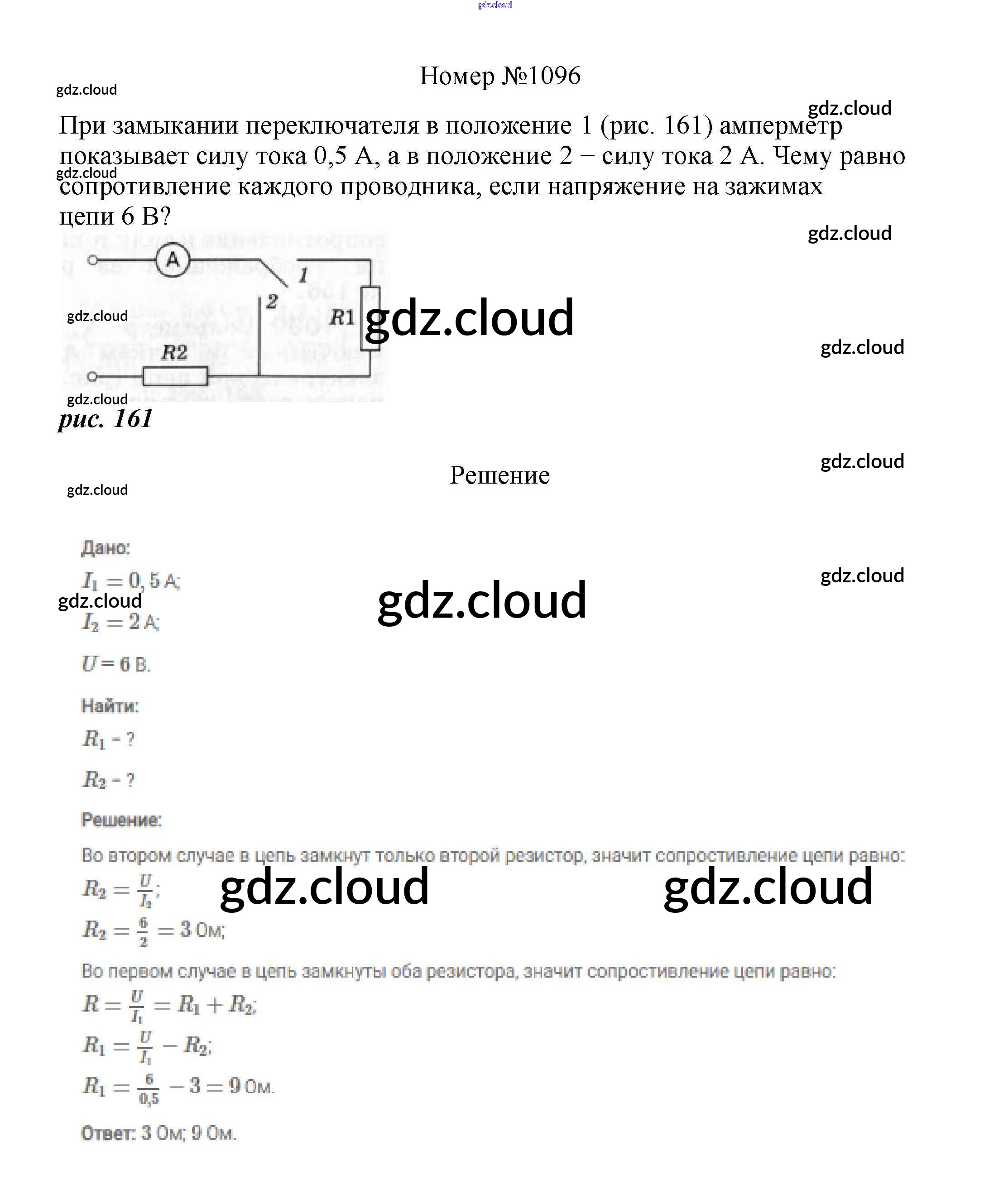 Ответ на задание 1096 Сборник вопросов и задач Физика за 7, 8, 9 (седьмой, восьмой, девятый) класс Марон, Позойский Вертикаль 2013