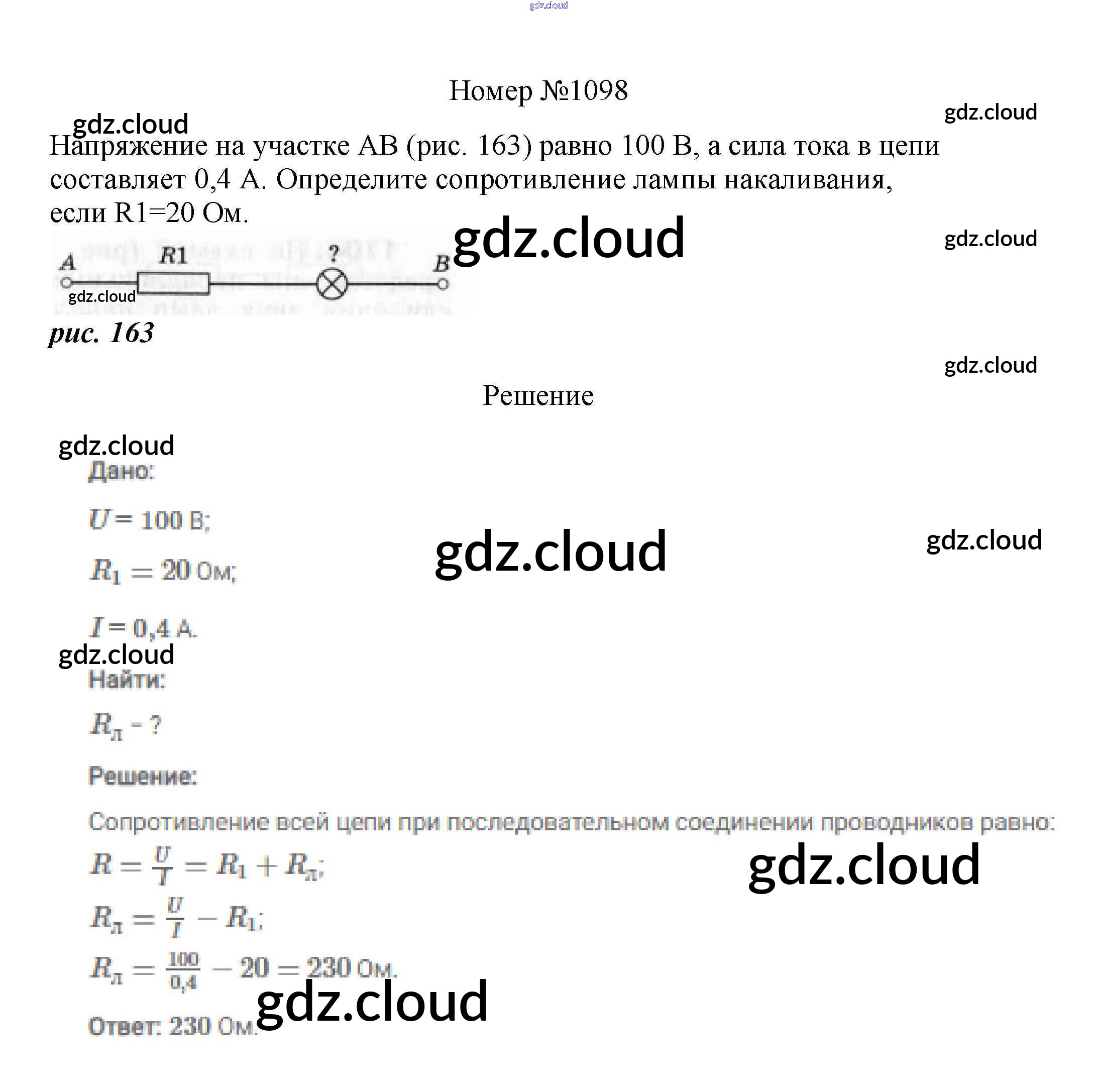 Ответ на задание 1098 Сборник вопросов и задач Физика за 7, 8, 9 (седьмой, восьмой, девятый) класс Марон, Позойский Вертикаль 2013