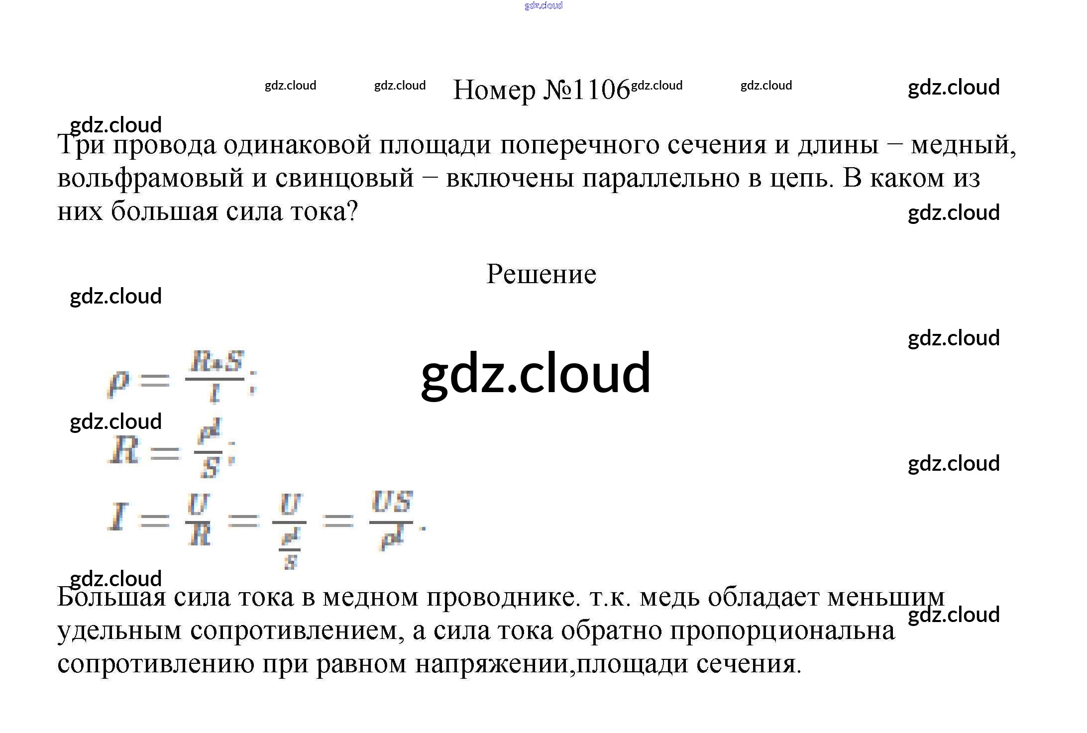 Ответ на задание 1106 Сборник вопросов и задач Физика за 7, 8, 9 (седьмой, восьмой, девятый) класс Марон, Позойский Вертикаль 2013
