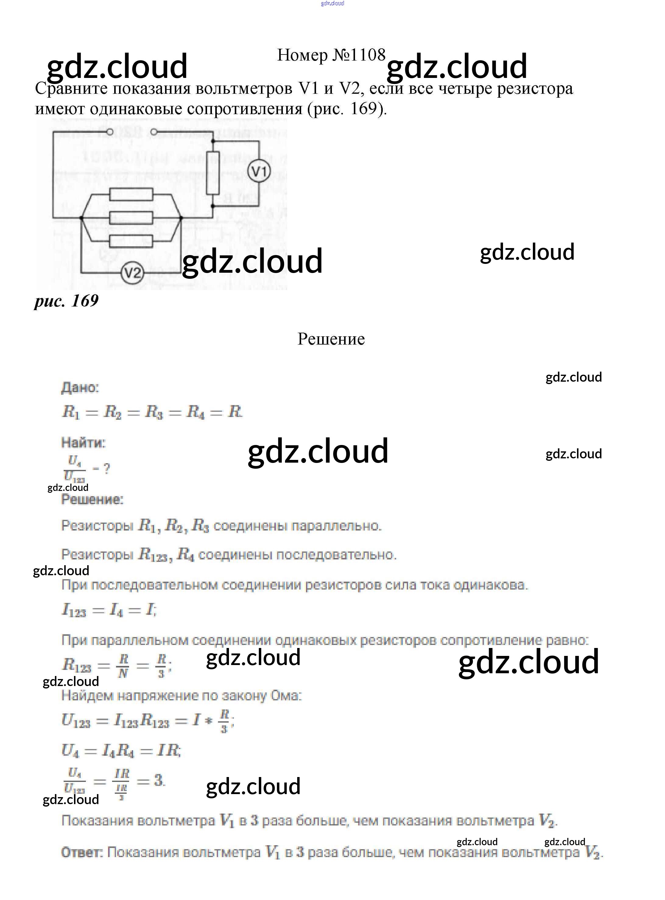 Ответ на задание 1108 Сборник вопросов и задач Физика за 7, 8, 9 (седьмой, восьмой, девятый) класс Марон, Позойский Вертикаль 2013