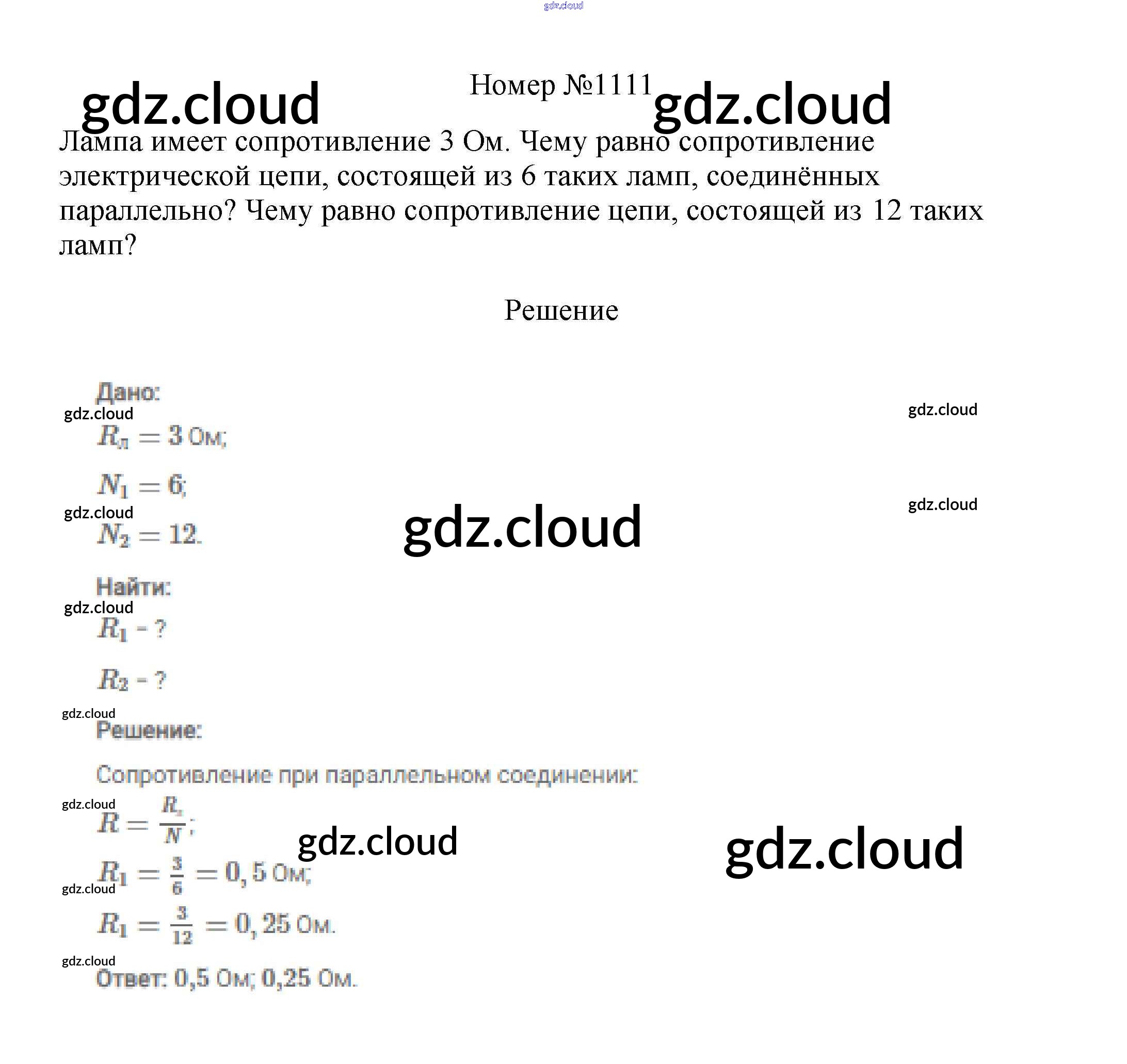 Ответ на задание 1111 Сборник вопросов и задач Физика за 7, 8, 9 (седьмой, восьмой, девятый) класс Марон, Позойский Вертикаль 2013