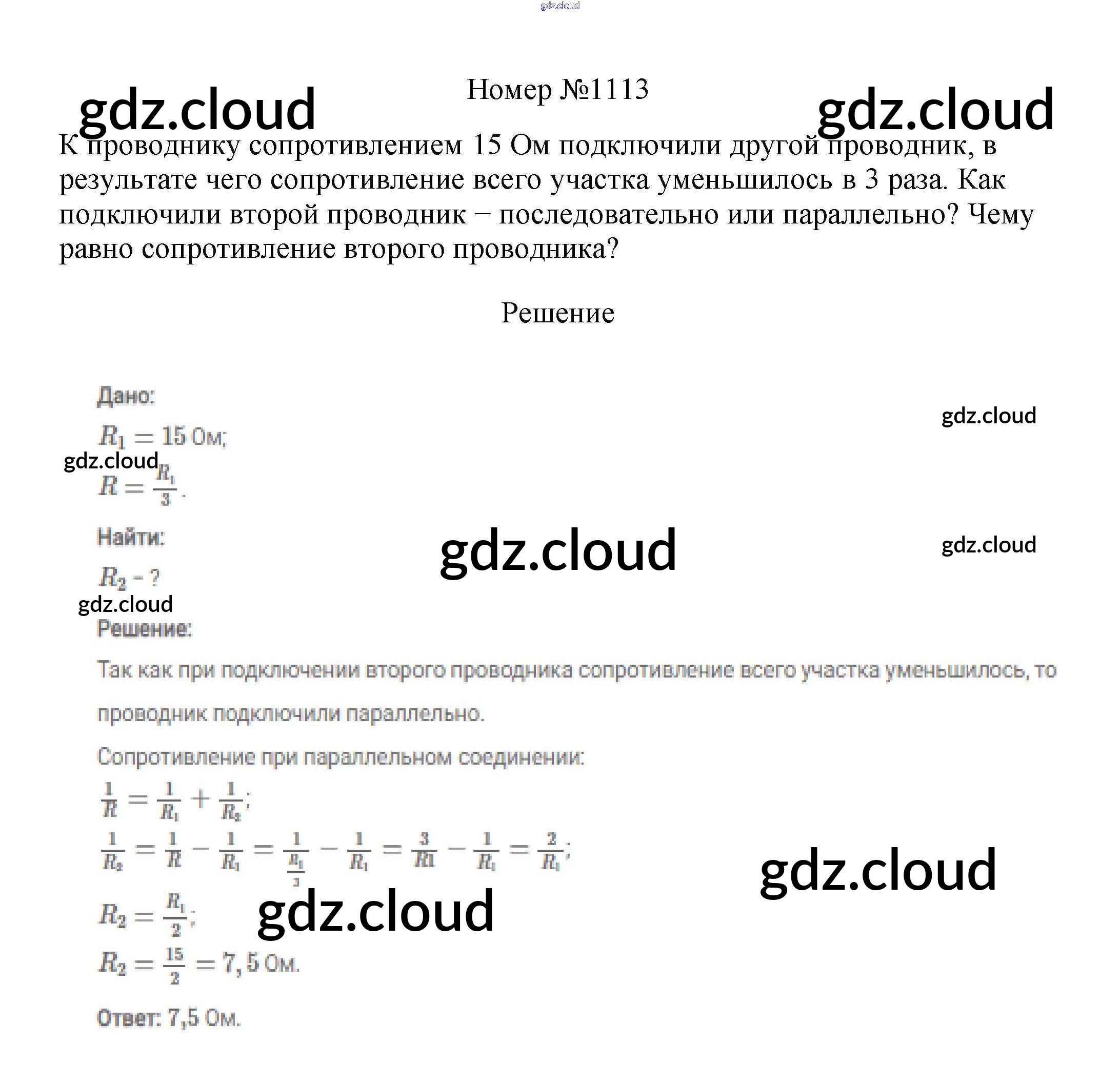 Ответ на задание 1113 Сборник вопросов и задач Физика за 7, 8, 9 (седьмой, восьмой, девятый) класс Марон, Позойский Вертикаль 2013