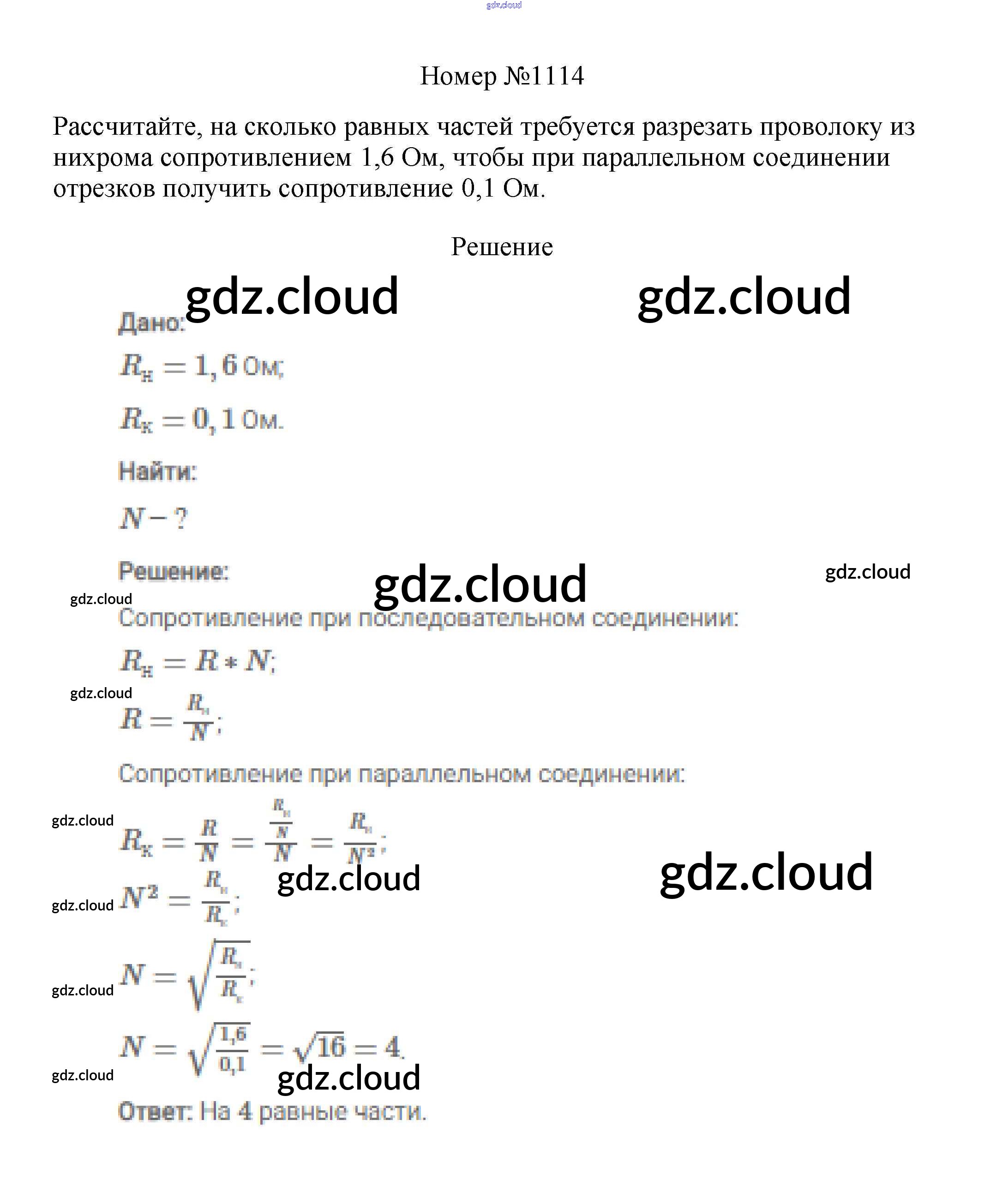 Ответ на задание 1114 Сборник вопросов и задач Физика за 7, 8, 9 (седьмой, восьмой, девятый) класс Марон, Позойский Вертикаль 2013
