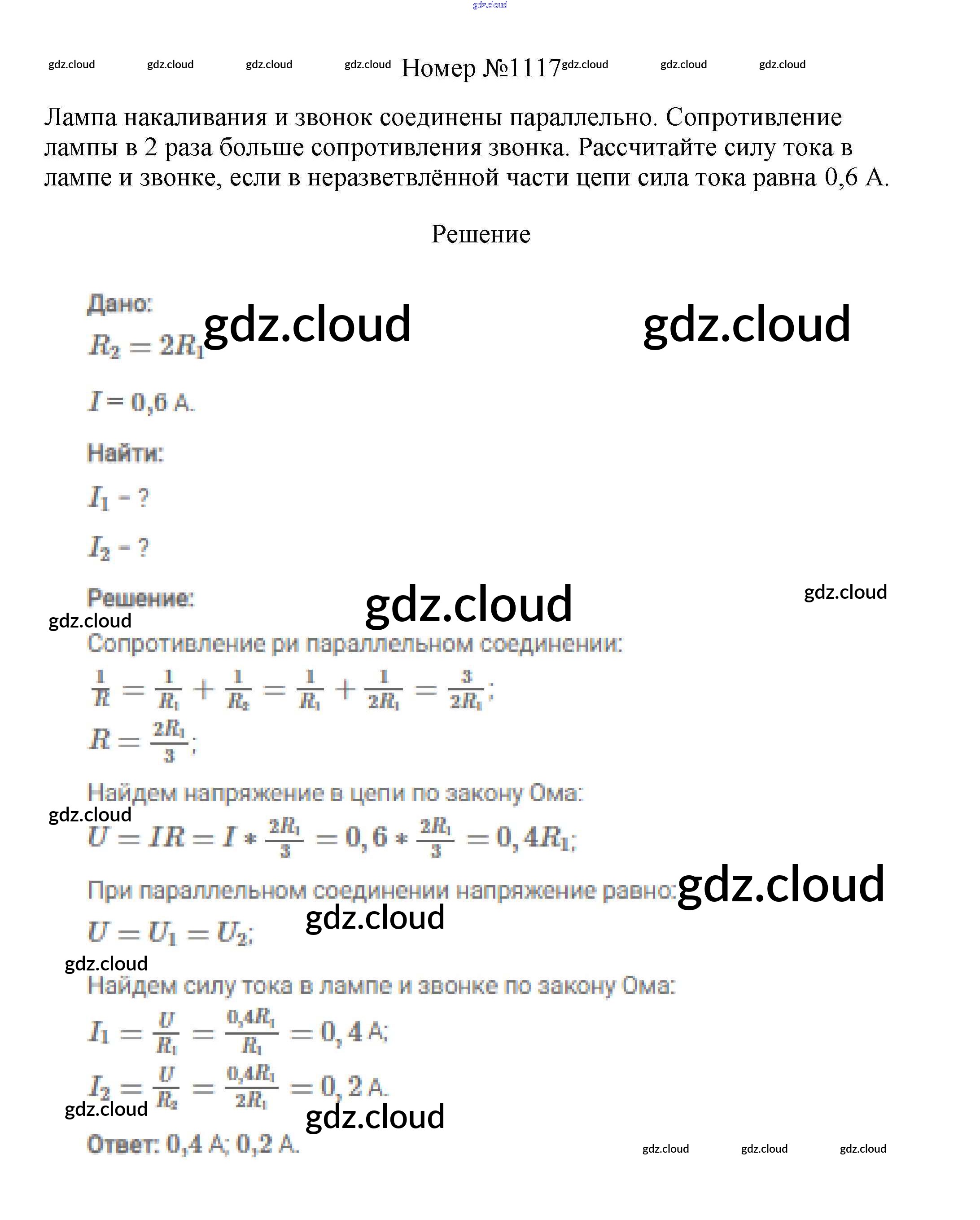 Ответ на задание 1117 Сборник вопросов и задач Физика за 7, 8, 9 (седьмой, восьмой, девятый) класс Марон, Позойский Вертикаль 2013