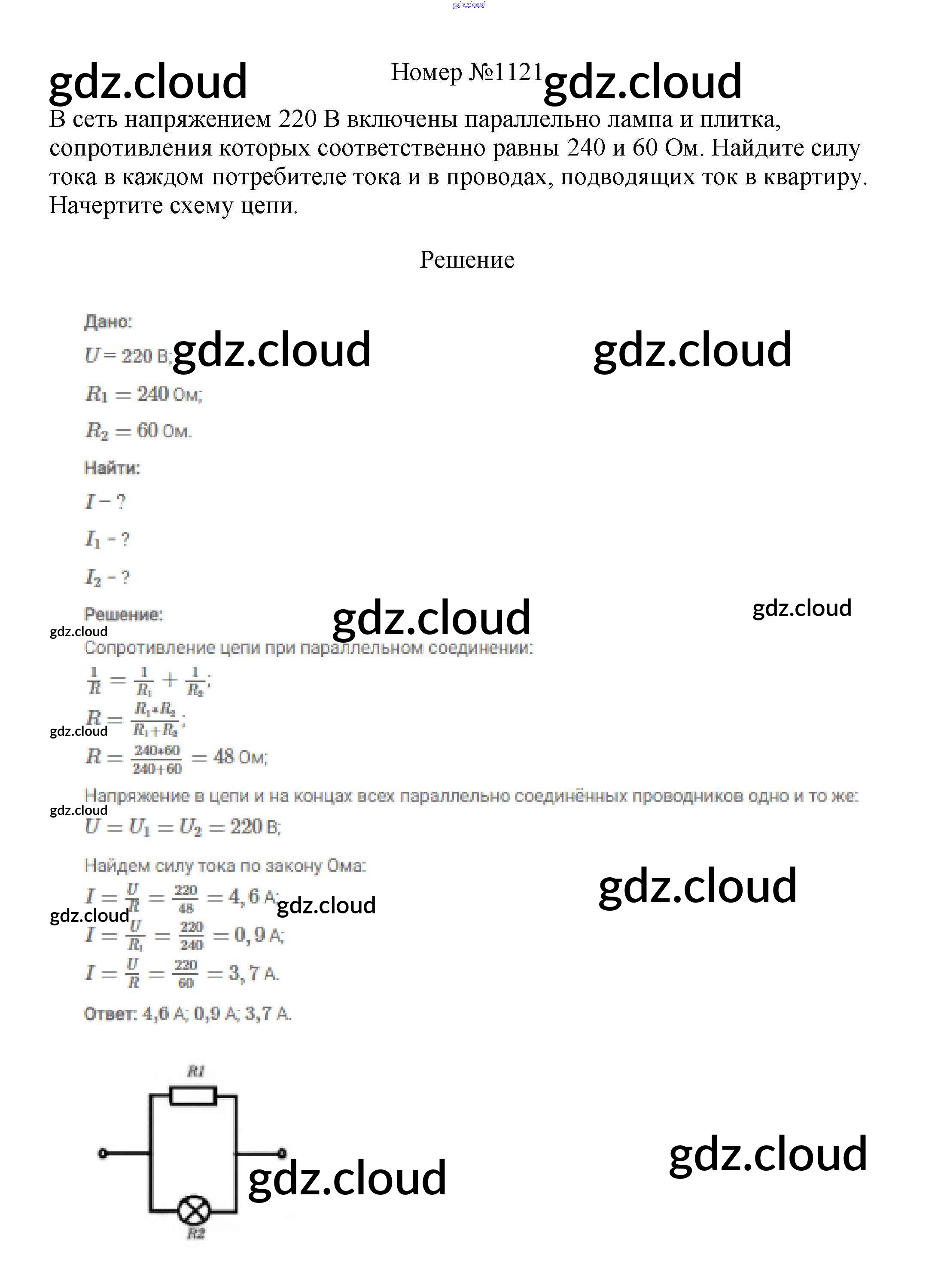 Ответ на задание 1121 Сборник вопросов и задач Физика за 7, 8, 9 (седьмой, восьмой, девятый) класс Марон, Позойский Вертикаль 2013