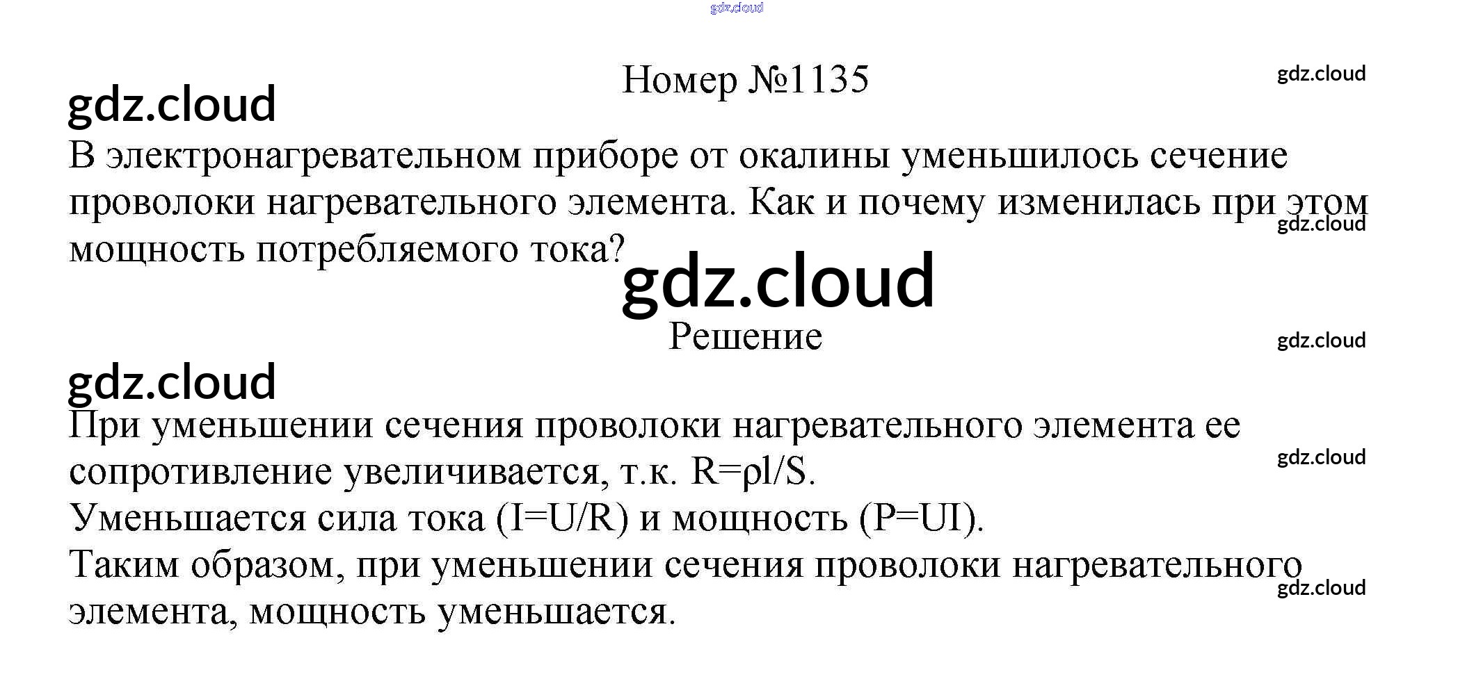 Ответ на задание 1135 Сборник вопросов и задач Физика за 7, 8, 9 (седьмой, восьмой, девятый) класс Марон, Позойский Вертикаль 2013
