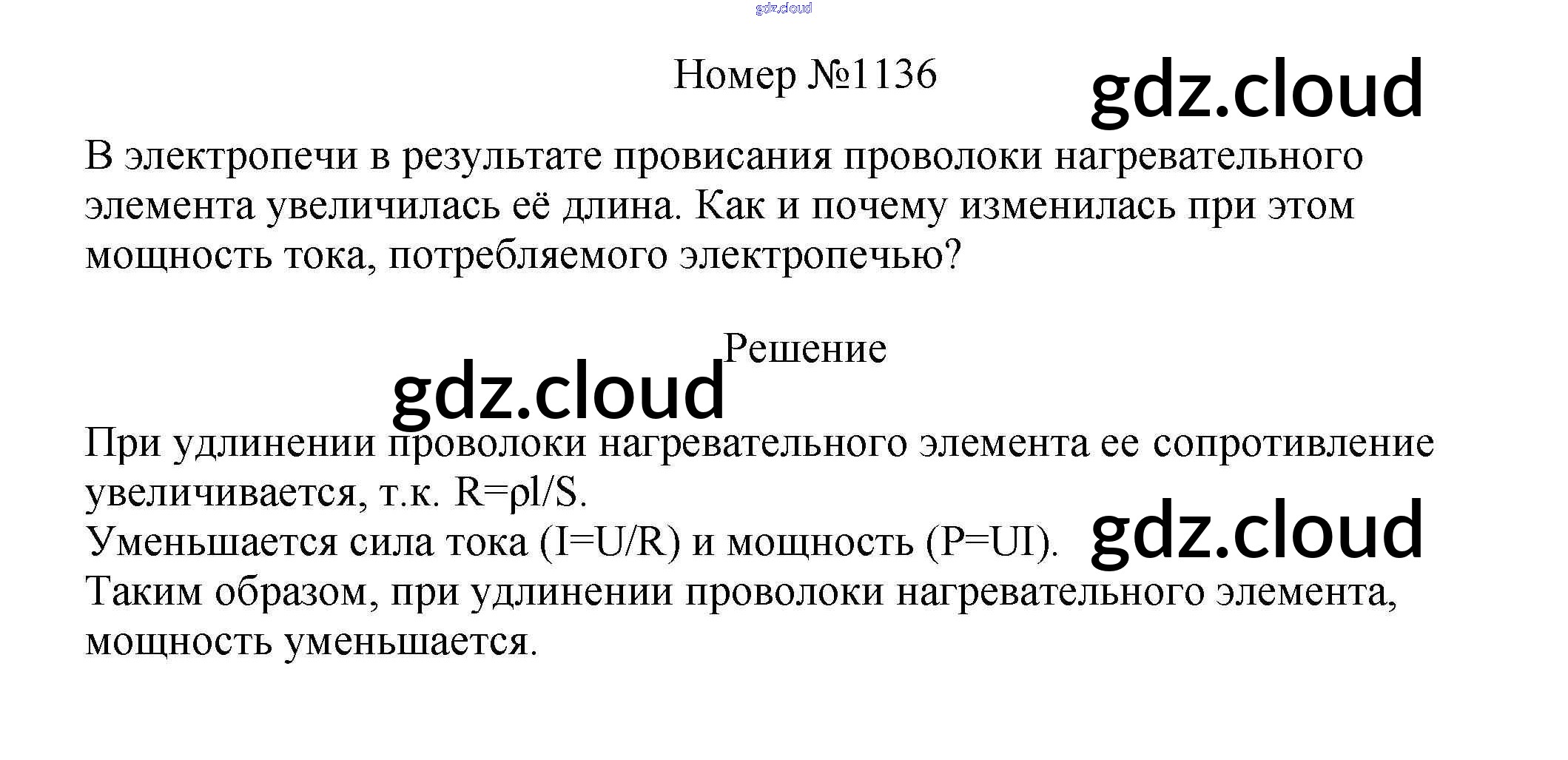 Ответ на задание 1136 Сборник вопросов и задач Физика за 7, 8, 9 (седьмой, восьмой, девятый) класс Марон, Позойский Вертикаль 2013