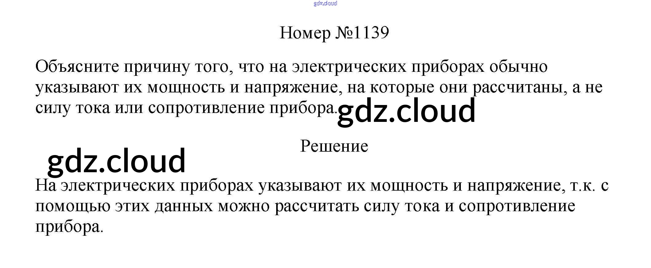 Ответ на задание 1139 Сборник вопросов и задач Физика за 7, 8, 9 (седьмой, восьмой, девятый) класс Марон, Позойский Вертикаль 2013