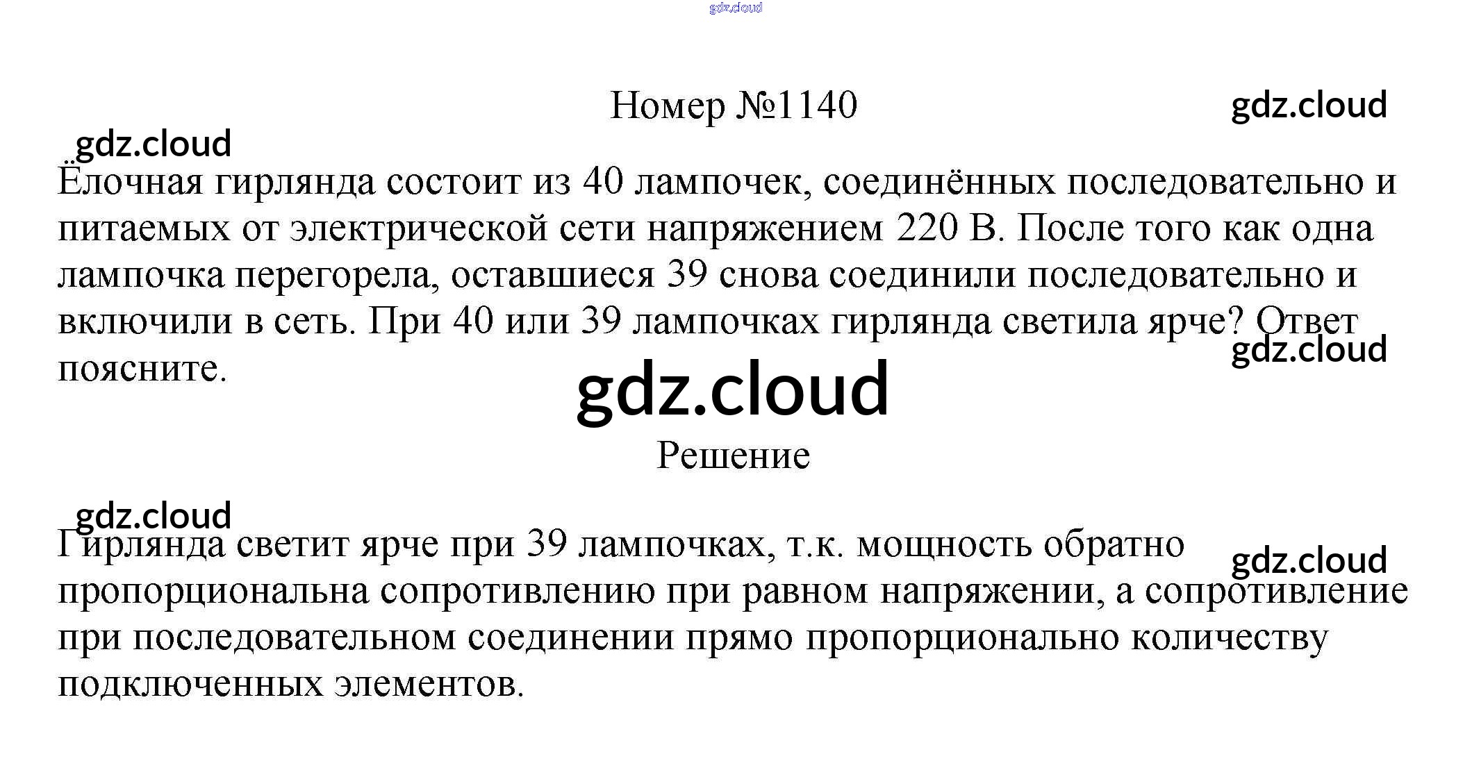 Ответ на задание 1140 Сборник вопросов и задач Физика за 7, 8, 9 (седьмой, восьмой, девятый) класс Марон, Позойский Вертикаль 2013