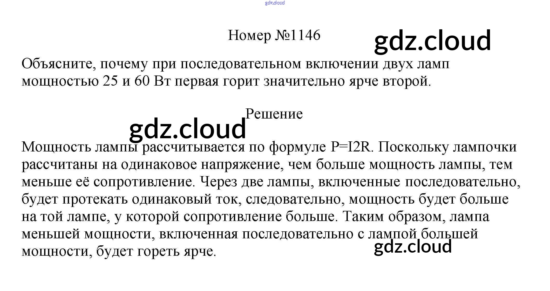 Ответ на задание 1146 Сборник вопросов и задач Физика за 7, 8, 9 (седьмой, восьмой, девятый) класс Марон, Позойский Вертикаль 2013