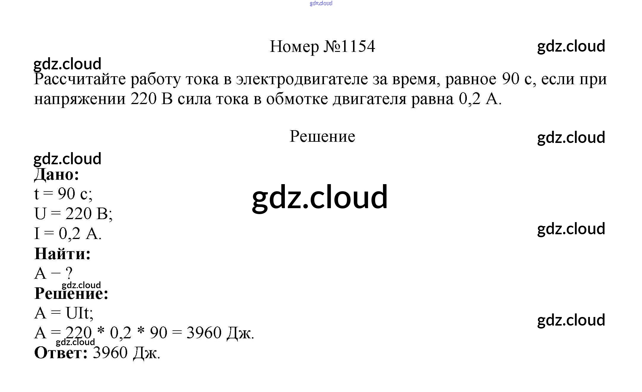 Ответ на задание 1154 Сборник вопросов и задач Физика за 7, 8, 9 (седьмой, восьмой, девятый) класс Марон, Позойский Вертикаль 2013