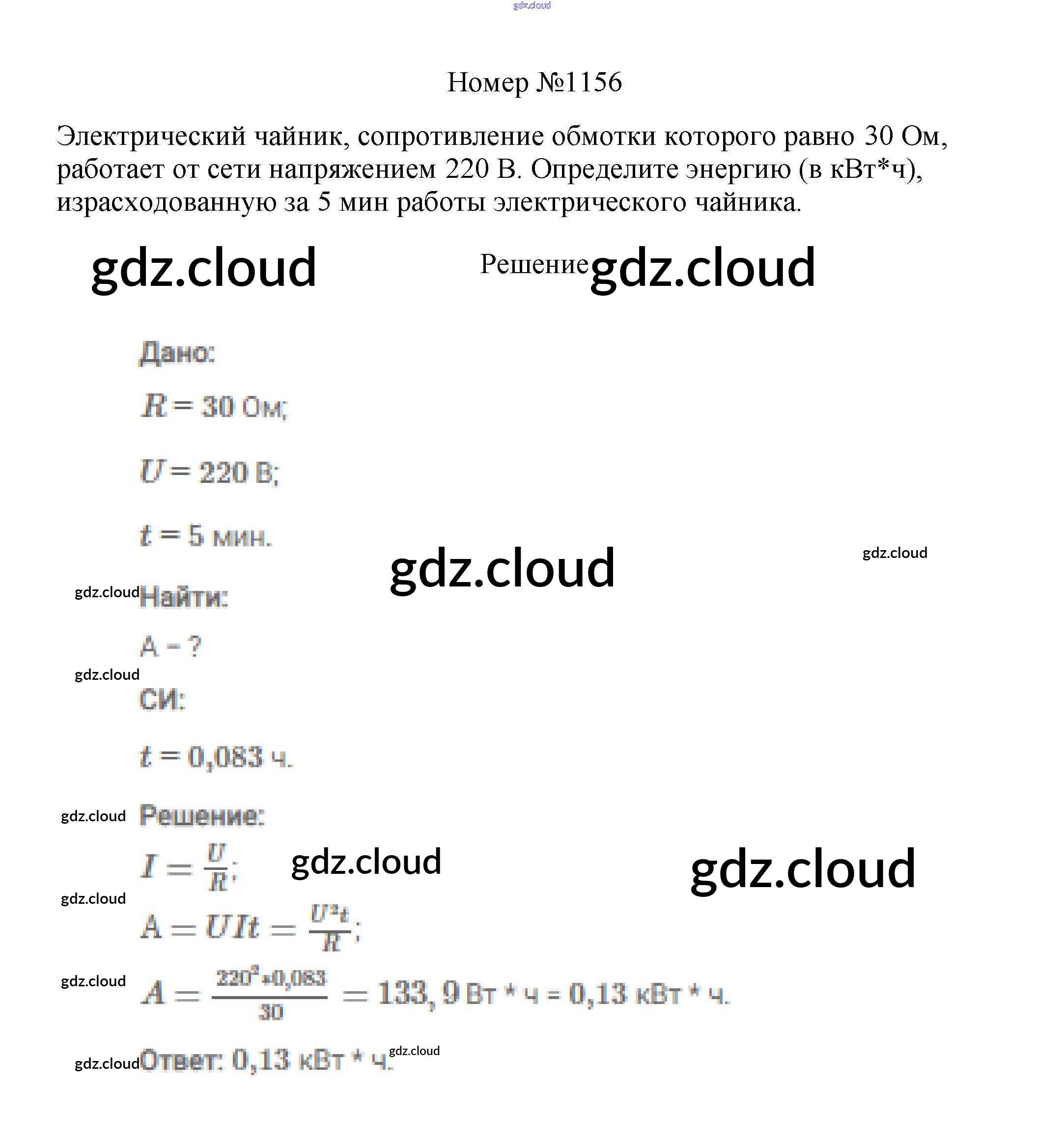 Ответ на задание 1156 Сборник вопросов и задач Физика за 7, 8, 9 (седьмой, восьмой, девятый) класс Марон, Позойский Вертикаль 2013