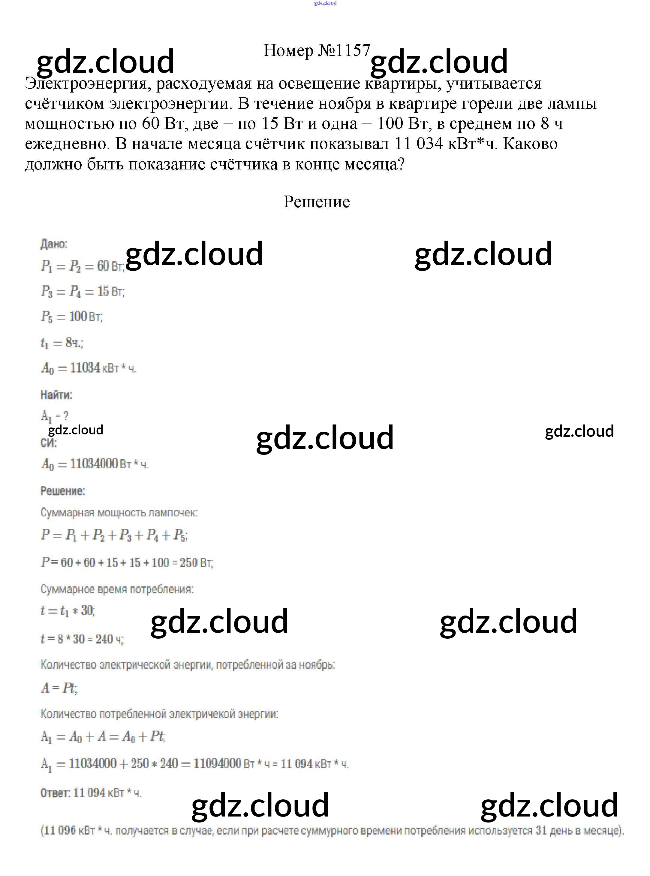 Ответ на задание 1157 Сборник вопросов и задач Физика за 7, 8, 9 (седьмой, восьмой, девятый) класс Марон, Позойский Вертикаль 2013