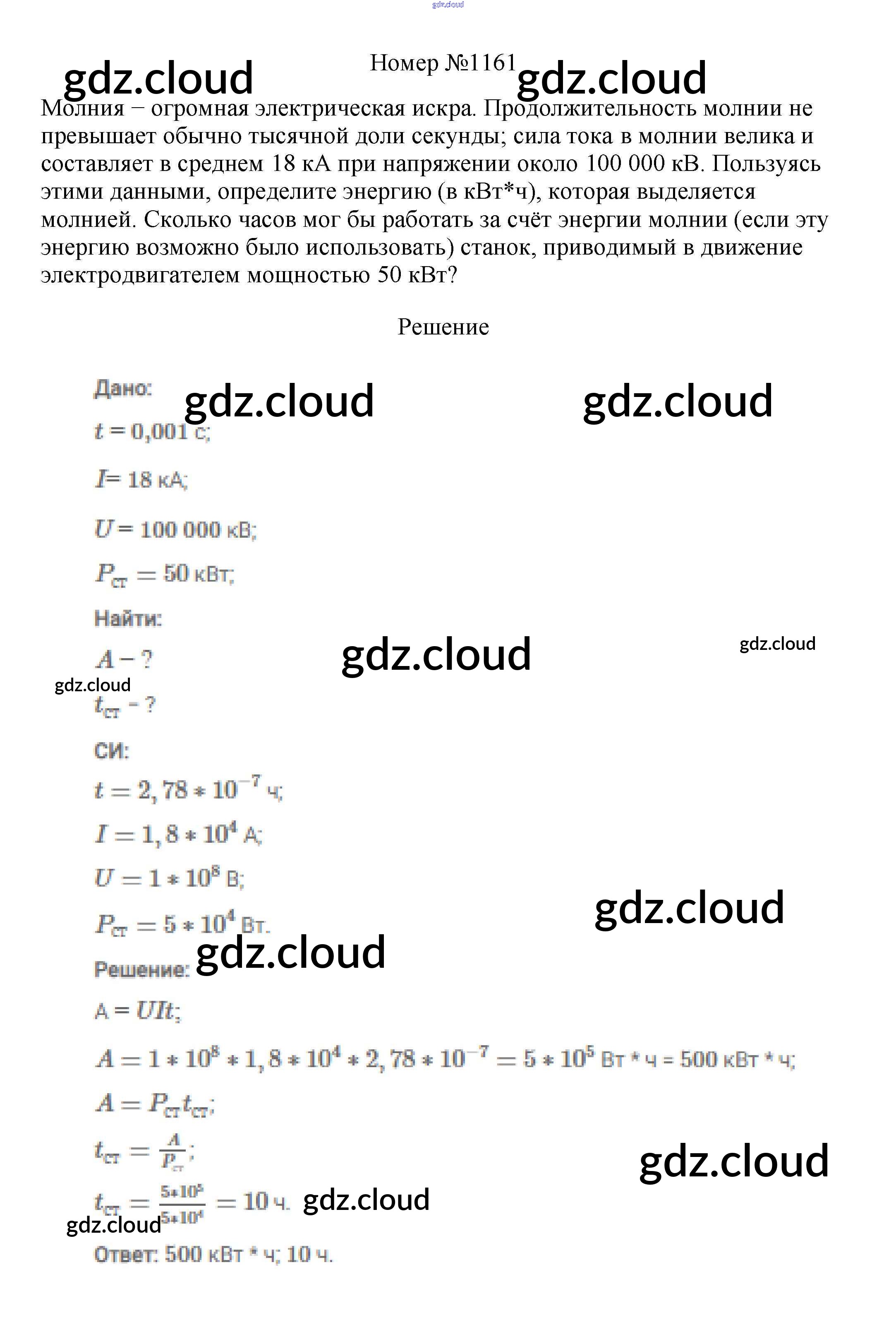Ответ на задание 1161 Сборник вопросов и задач Физика за 7, 8, 9 (седьмой, восьмой, девятый) класс Марон, Позойский Вертикаль 2013
